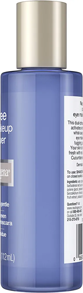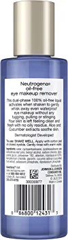 Use the Neutrogena Oil-Free Eye Makeup Remover Solution to help gently remove makeup from around your eyes. This dual-phase liquid removes even waterproof eye makeup, including mascara and eyeliner, without any tugging or pulling. Because the formula is 100 percent oil-free, it does not leave behind any oily residue. Aloe and cucumber extracts in the makeup remover soothe skin and leave it feeling cool and refreshed. This non-greasy makeup removing formula is ophthalmologist-tested and safe for sensitive eyes and contact lens wearers.