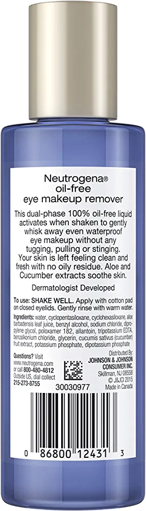 | nameOriginal | Neutrogena Oil-Free Liquid Eye Makeup Remover, Residue-Free, Non-Greasy, Gentle & Skin-Soothing Makeup Remover Solution with Aloe & Cucumber Extract for Waterproof Mascara, 3.8 fl. oz |