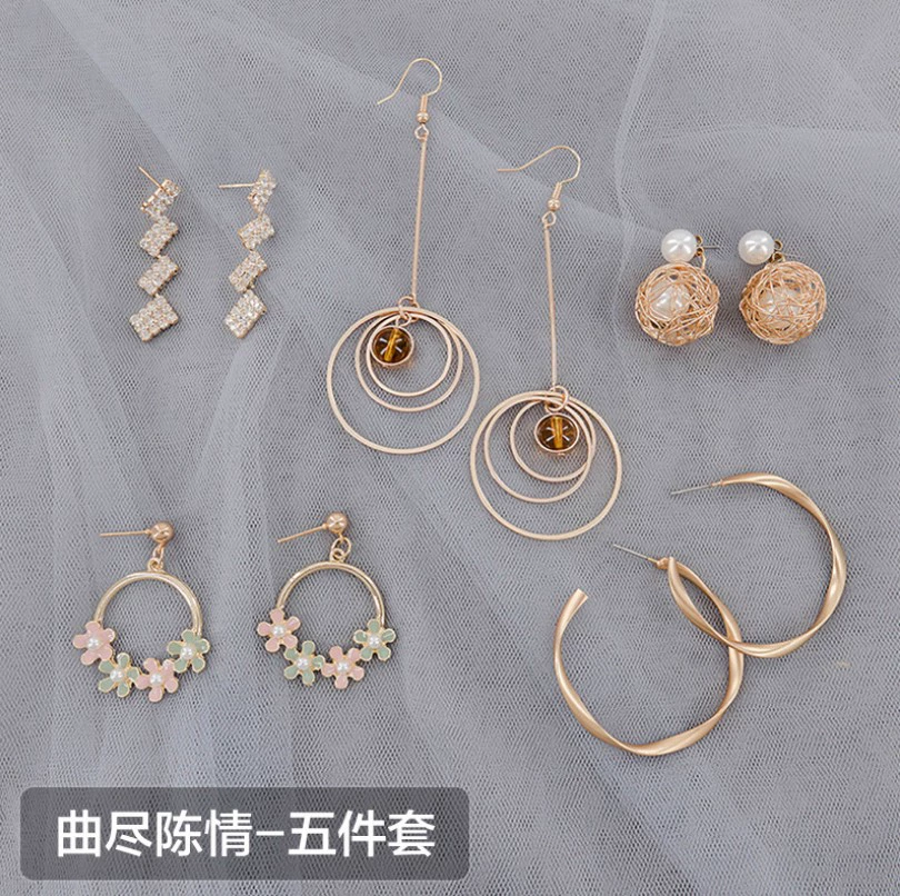 | nameOriginal | Never repeat the same high-end five-piece round face earrings every day |