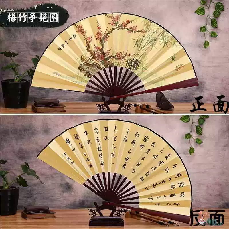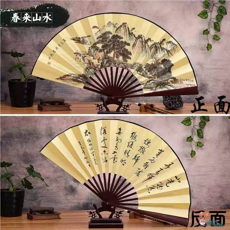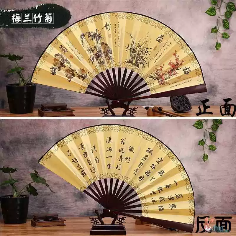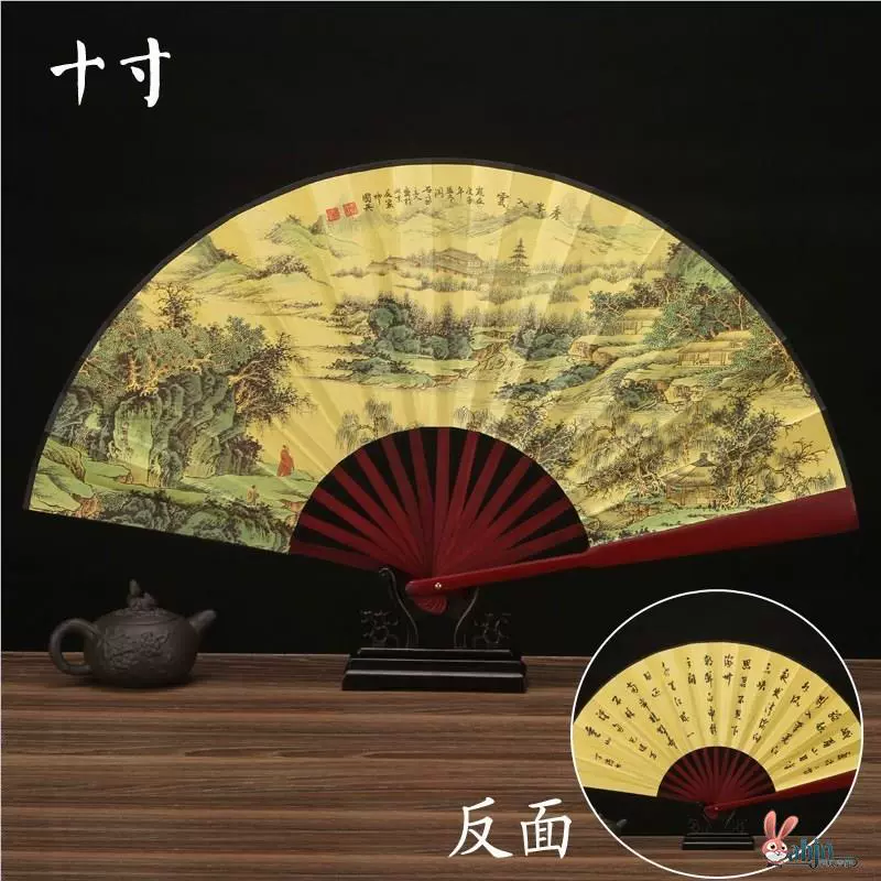 | nameOriginal | New 10-inch men's Chinese style folding fan, ink, ancient poetry, yellow background, silk cloth, dance, photo, summer hand-cranked fan |