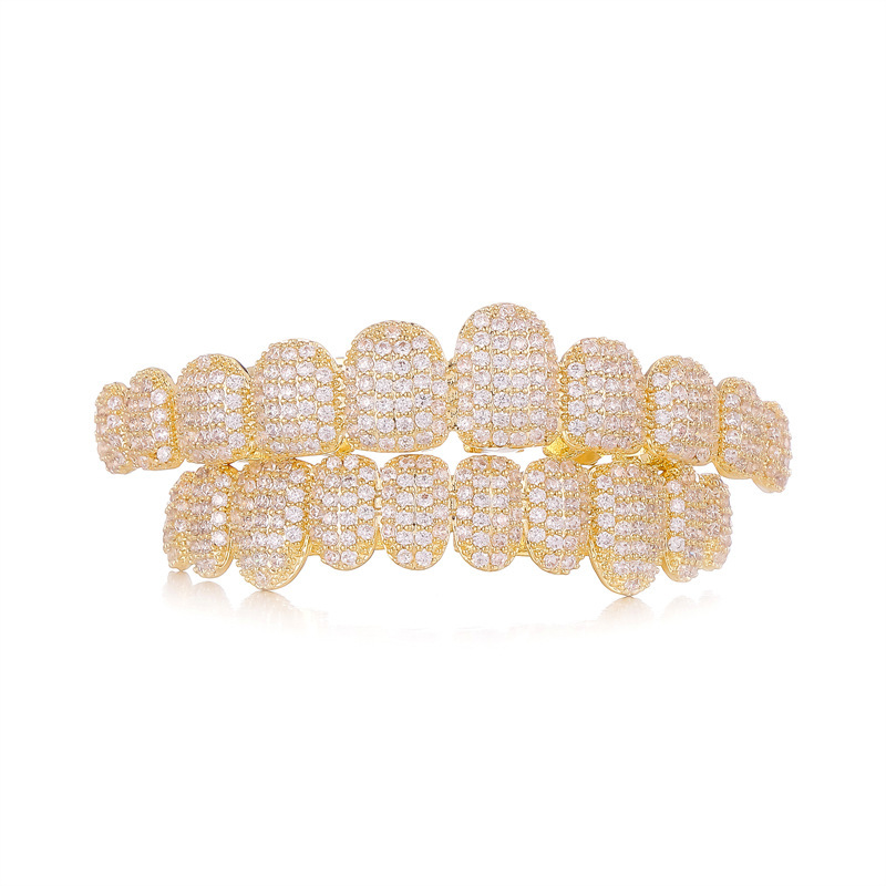 | nameOriginal | New 10-tooth full diamond large gold teeth plated 18k men's super flash braces decoration Xi Yin TEMU hot sale |