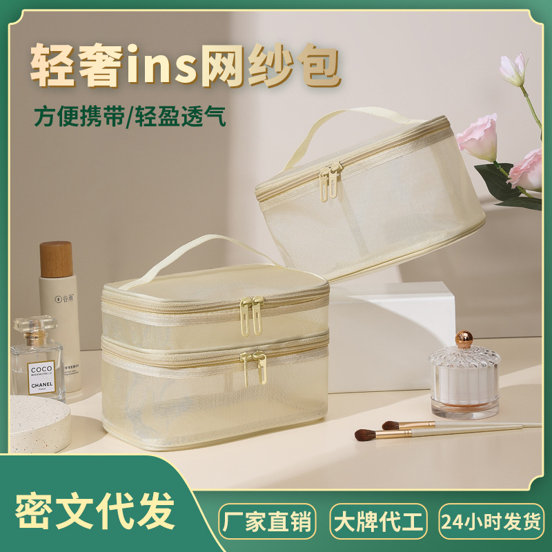 | nameOriginal | New 2024 Mesh Bag Wash Bag Breathable Portable Cosmetic Bag Hollow Nylon Mesh Large Capacity Storage Bag |