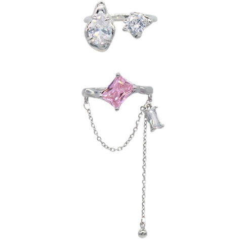 | nameOriginal | New 2024 stacked pink zircon ins geometric tassel chain opening versatile niche adjustable ring |