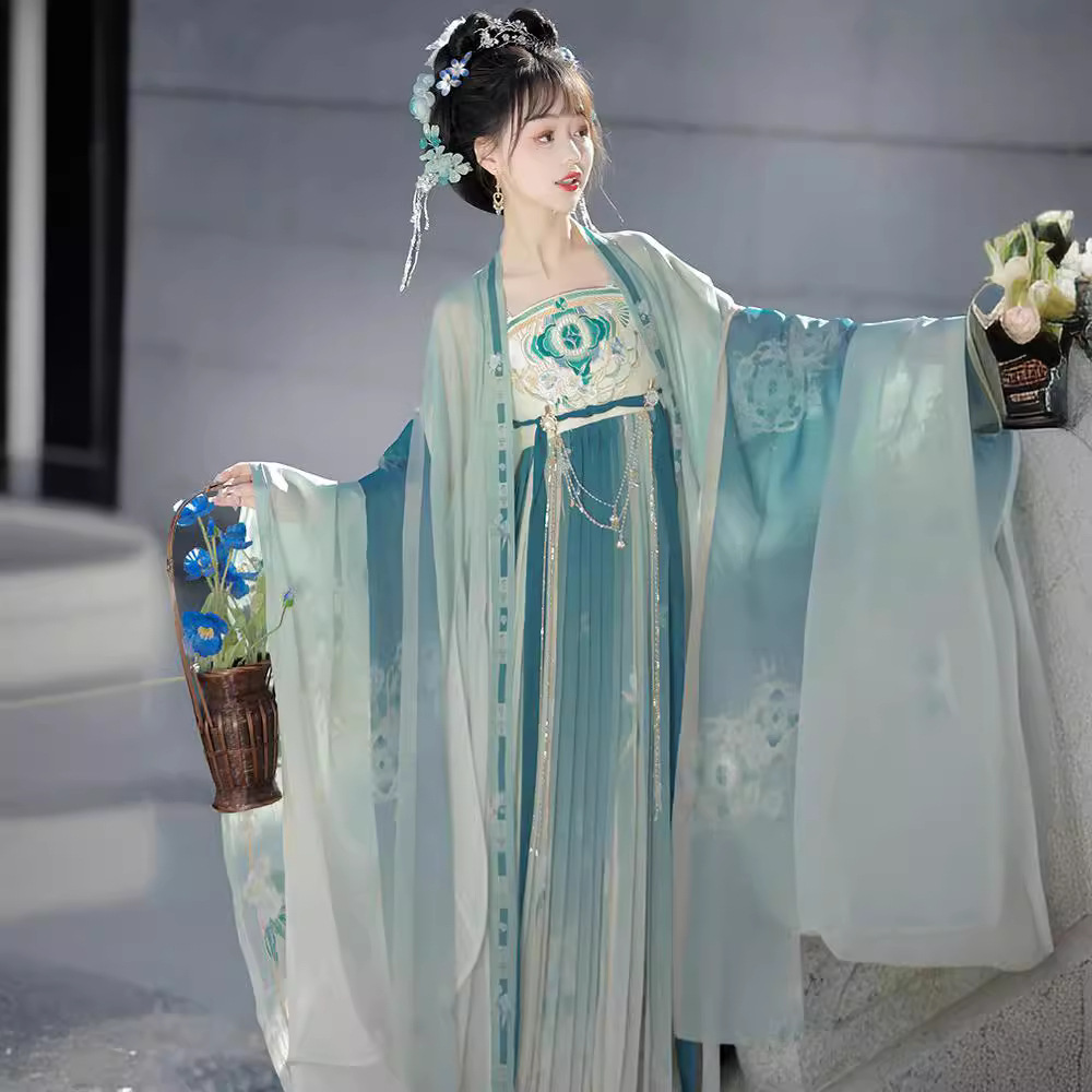 New 2024 Women’s Original Heavy Industry Embroidered Big Sleeve Shirt Tang Style Chebula Skirt Hanfu Women’s Super Fairy Daily Spring and Summer Style