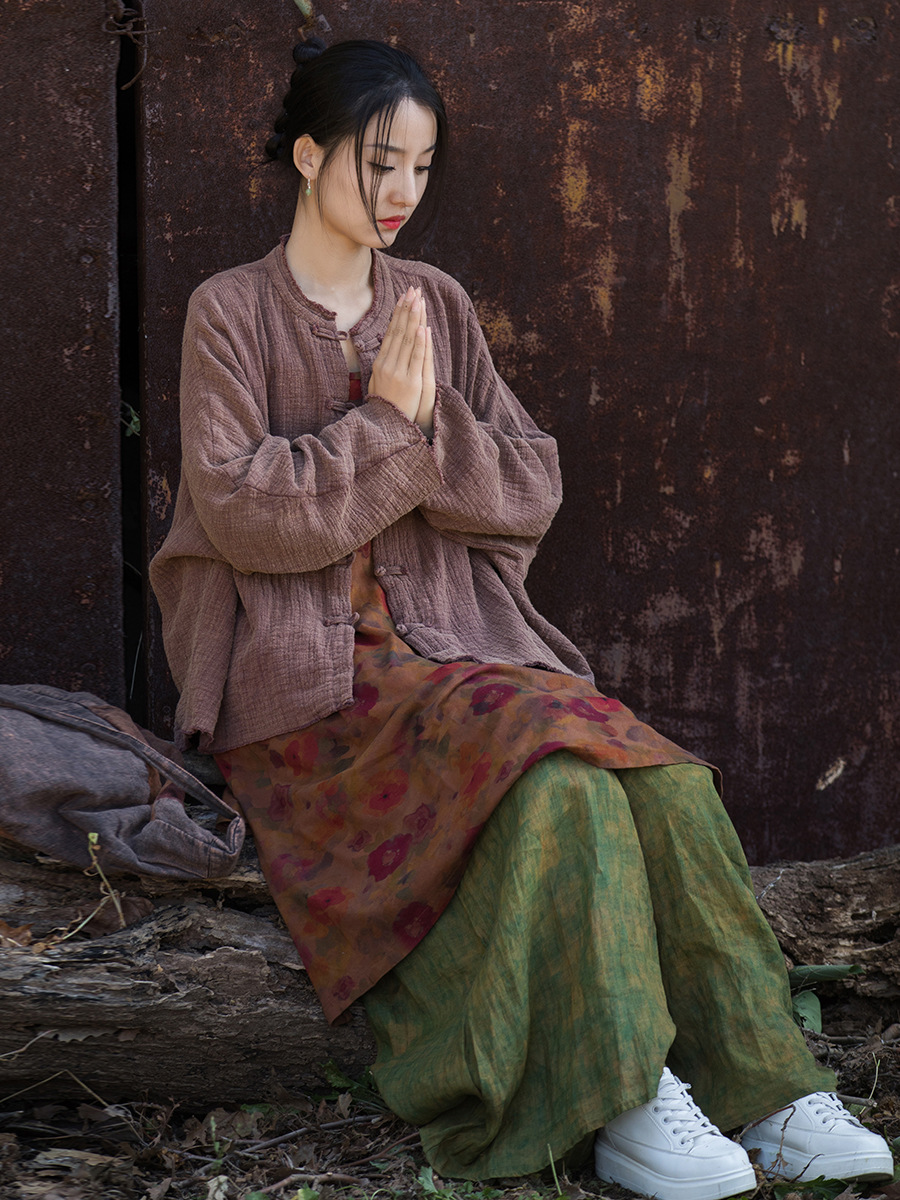 | nameOriginal | New 24 Spring Cotton and Linen Women's Clothing New Wrinkled Texture Stir-fried Color Old Button Coat Home Travel Meditation Women |