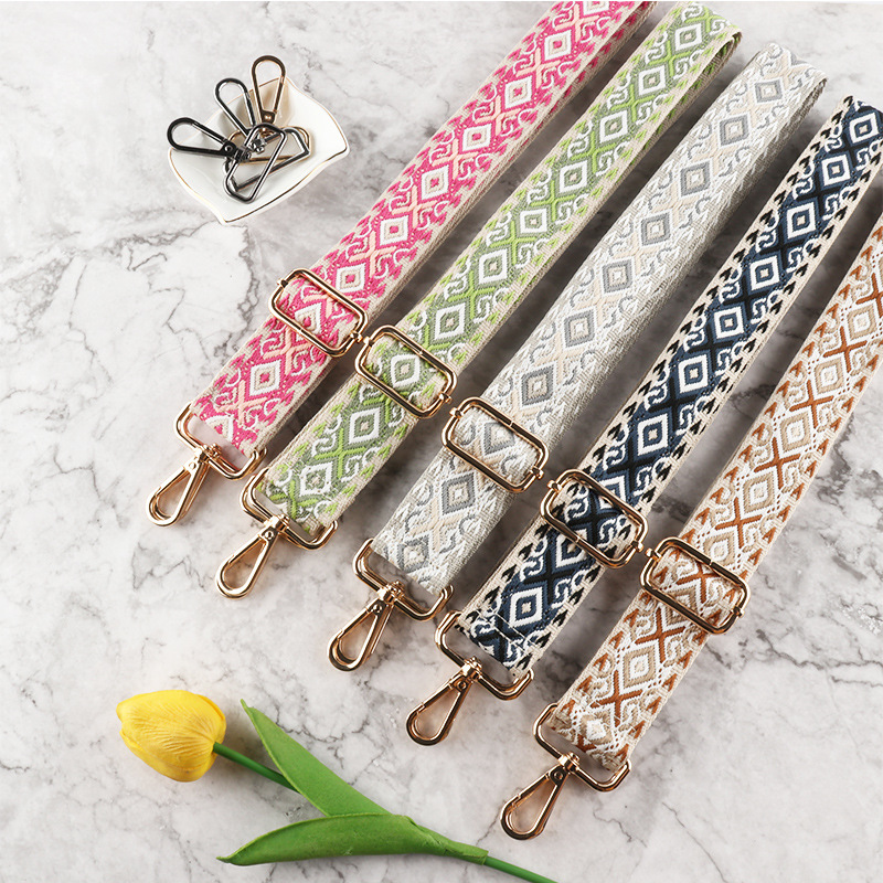 New 3.8cm Diamond jacquard ethnic style bag strap adjustable lengthened shoulder strap women’s bag accessories burden reduction strap