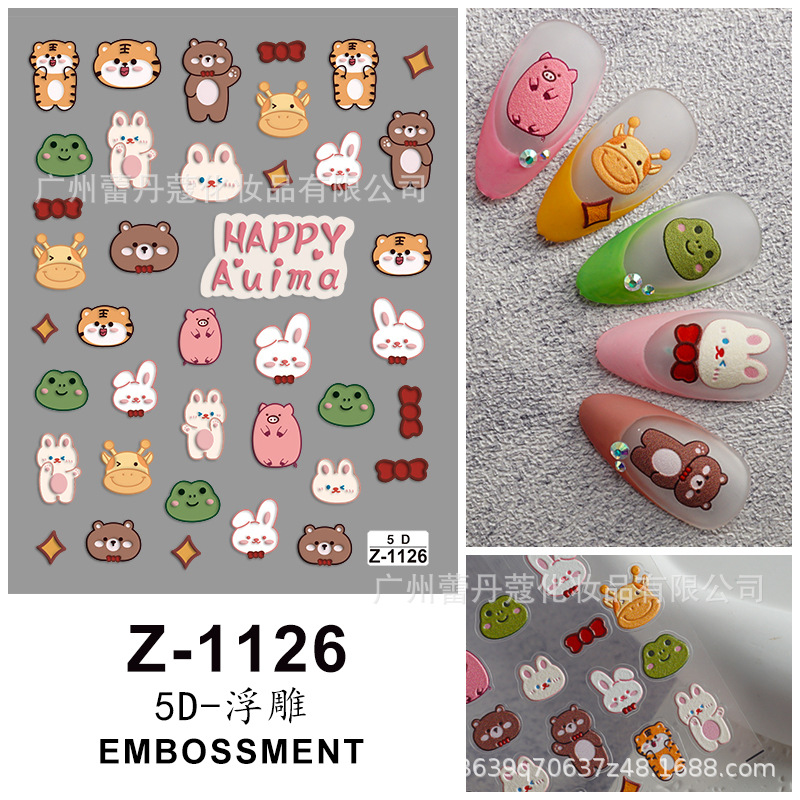 | nameOriginal | New 5D embossed nail stickers cartoon cute cute version of small animal rabbit bear with adhesive nail stickers jewelry |