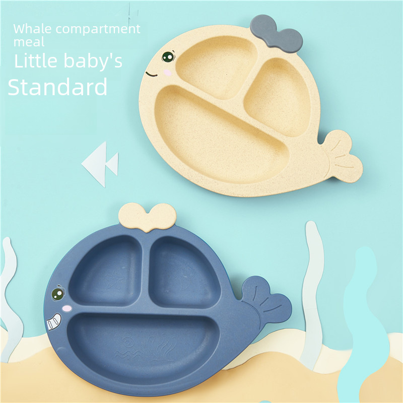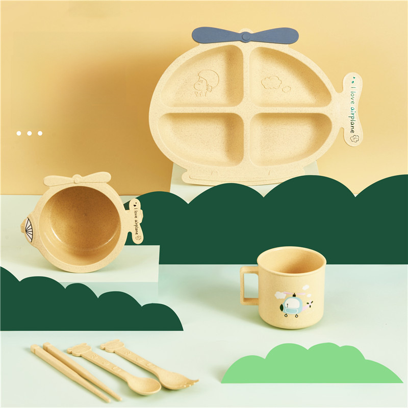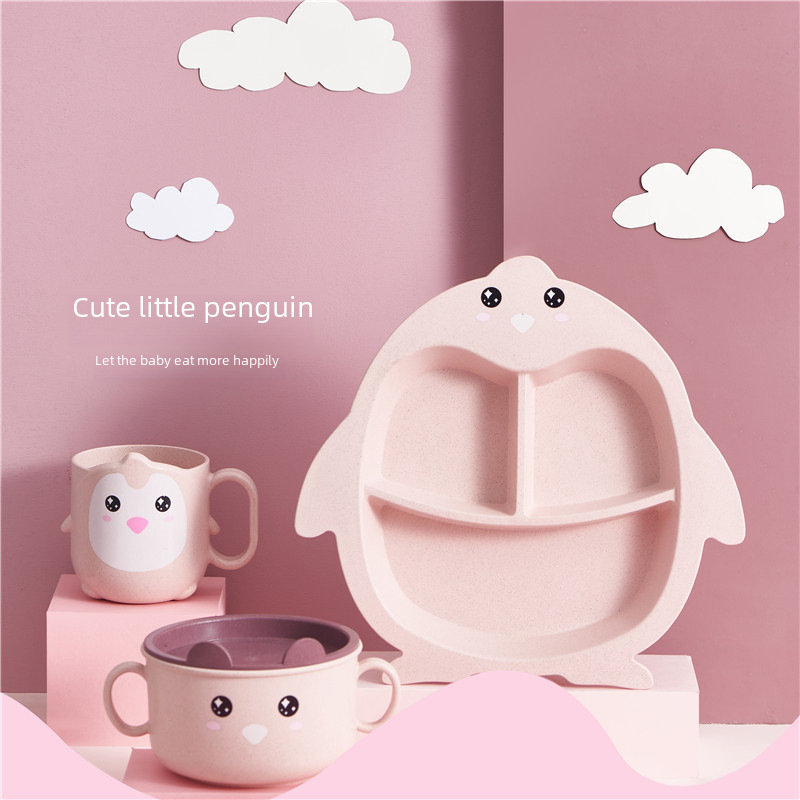 New 6-piece tableware grid plate cute double-ear bowl Milk Cup mouthwash Cup spoon Fork chopsticks