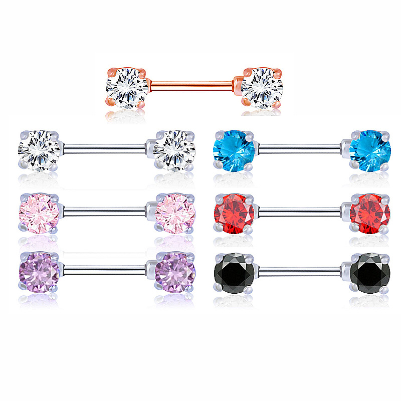| nameOriginal | New 7mm straight rod inlaid zircon four-claw nipple ring EBAY amacson rose gold zircon body piercing jewelry |