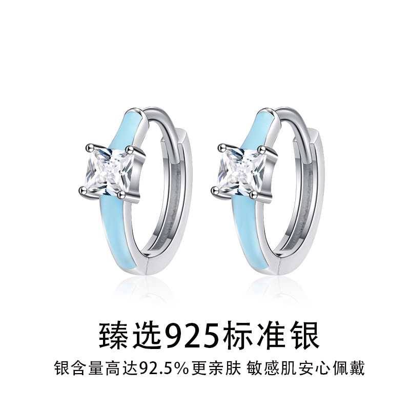 New 925 Sterling Silver Ear Buckle Women's Ins Niche Light Luxury Simple Drop Glue Earrings Distinctive Ear Pole Mori Style