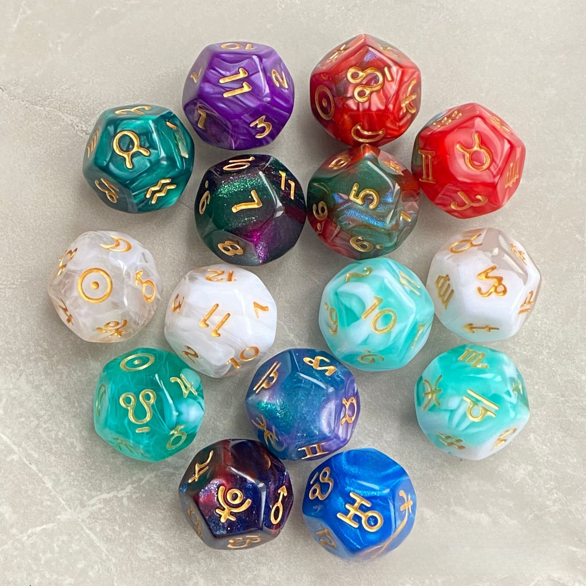 | nameOriginal | New Acrylic Dice 12 Constellation Table Game Entertainment 12 Polyhedron D12 Gift Game Dice |