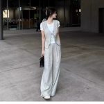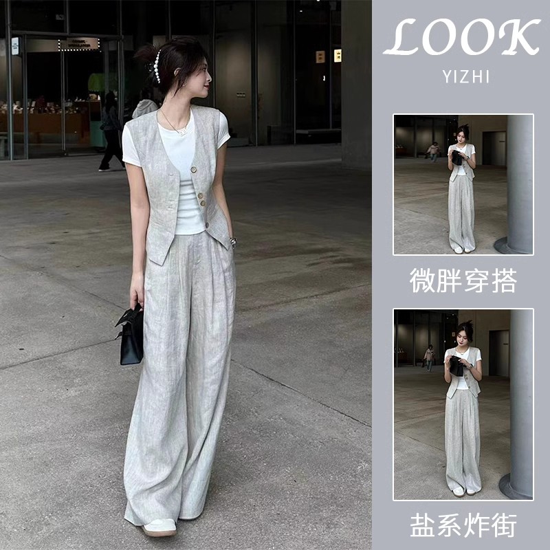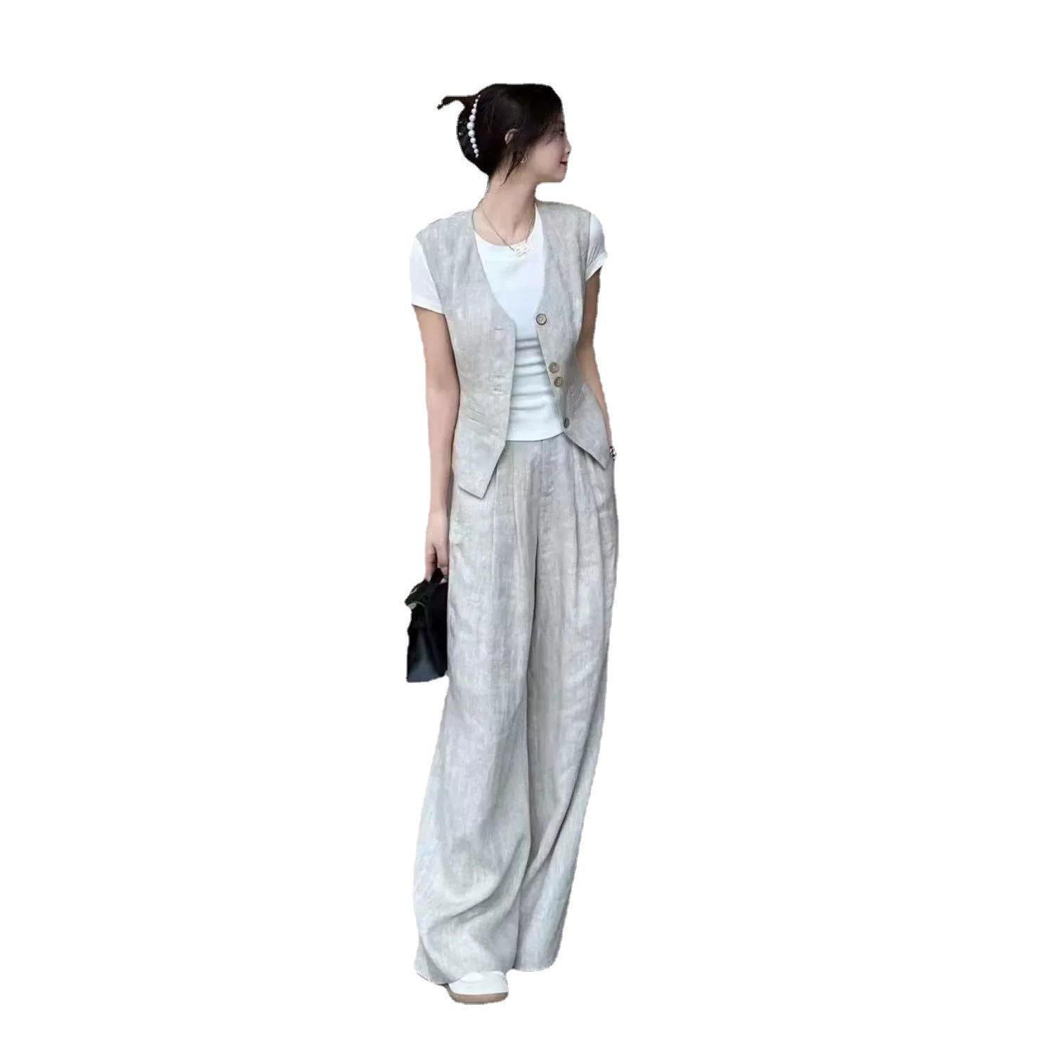 New Age-reducing Western Style Capable Elegant Women’s Fashion Fashionable Chanel Style Linen Vest Wide Leg Pants suit