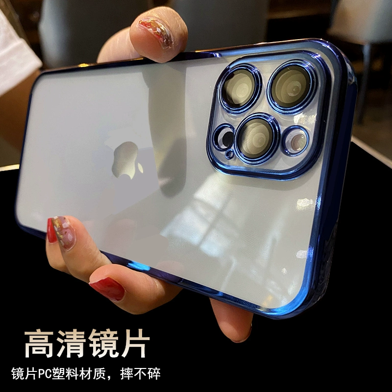 New all-inclusive edge with built-in lens film iphone11 mobile phone case suitable for Apple 13 protective cover 15pro electroplated gold edge 14pro Max luxury high-end 12mini anti-fall 16 sea blue xr