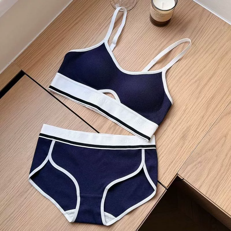 | nameOriginal | New American style breathable sports bra women's two-piece summer thin wire-free sexy pure lust style bra set |