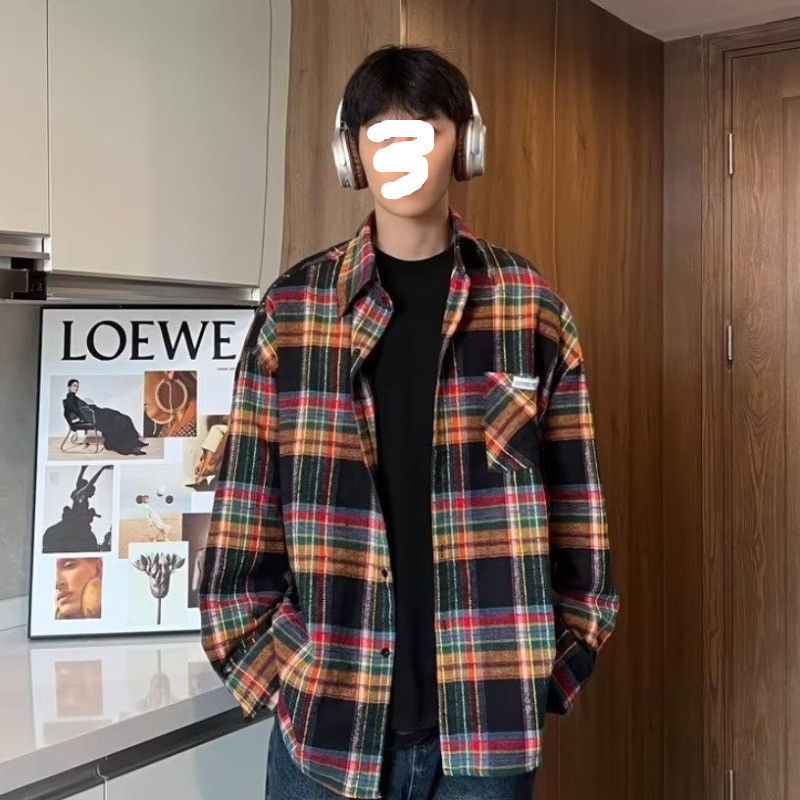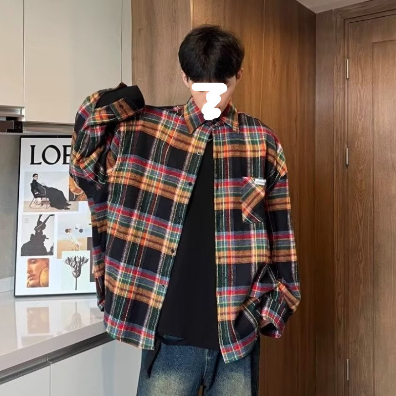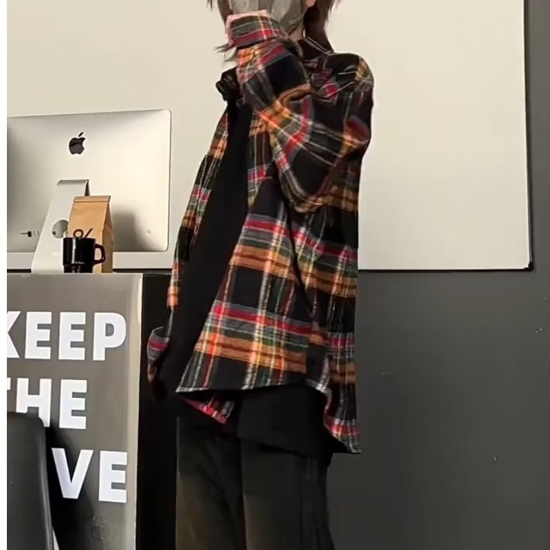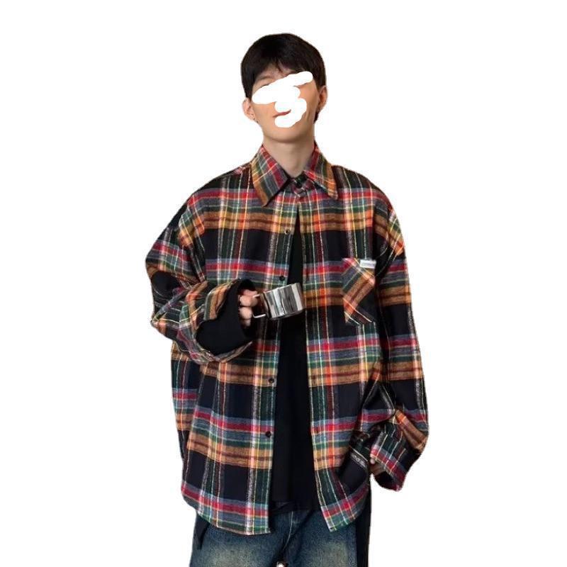 New American Style Retro Plaid Long-sleeved Shirt Trendy Brand for Men and Women Street Loose Niche All-match Casual Fashion Shirt