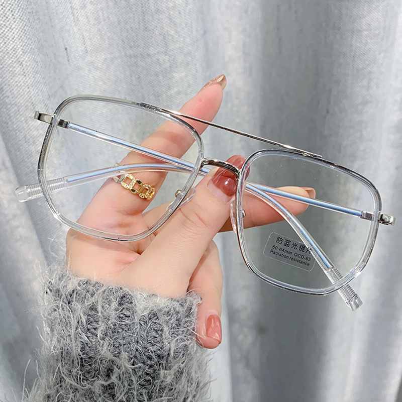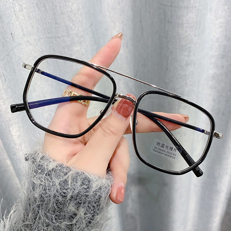 New Anti-blue Light Flat Mirror Men’s and Women’s Retro Polygon Double Beam Glasses Internet Celebrity Myopia Frame 8025