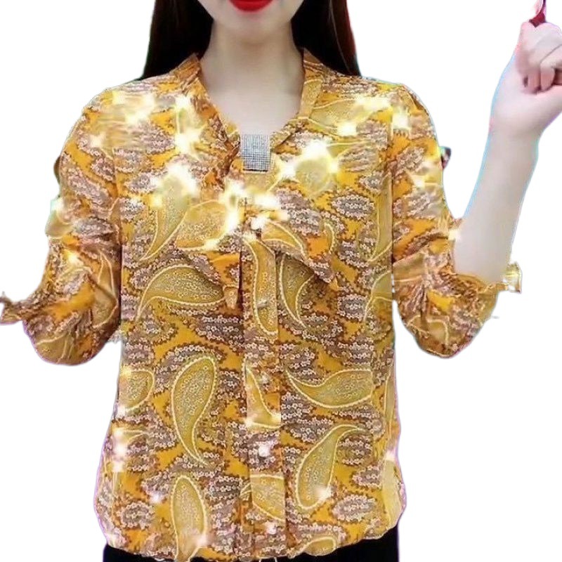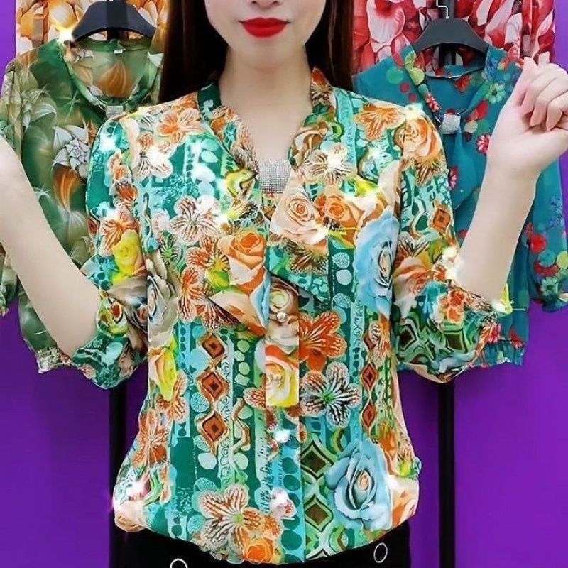 | nameOriginal | New Arrival Chiffon Shirt for Middle-aged Mother Fashionable Small Shirt Stylish Top with Printed Buttons Loose Elegant Top for Women |