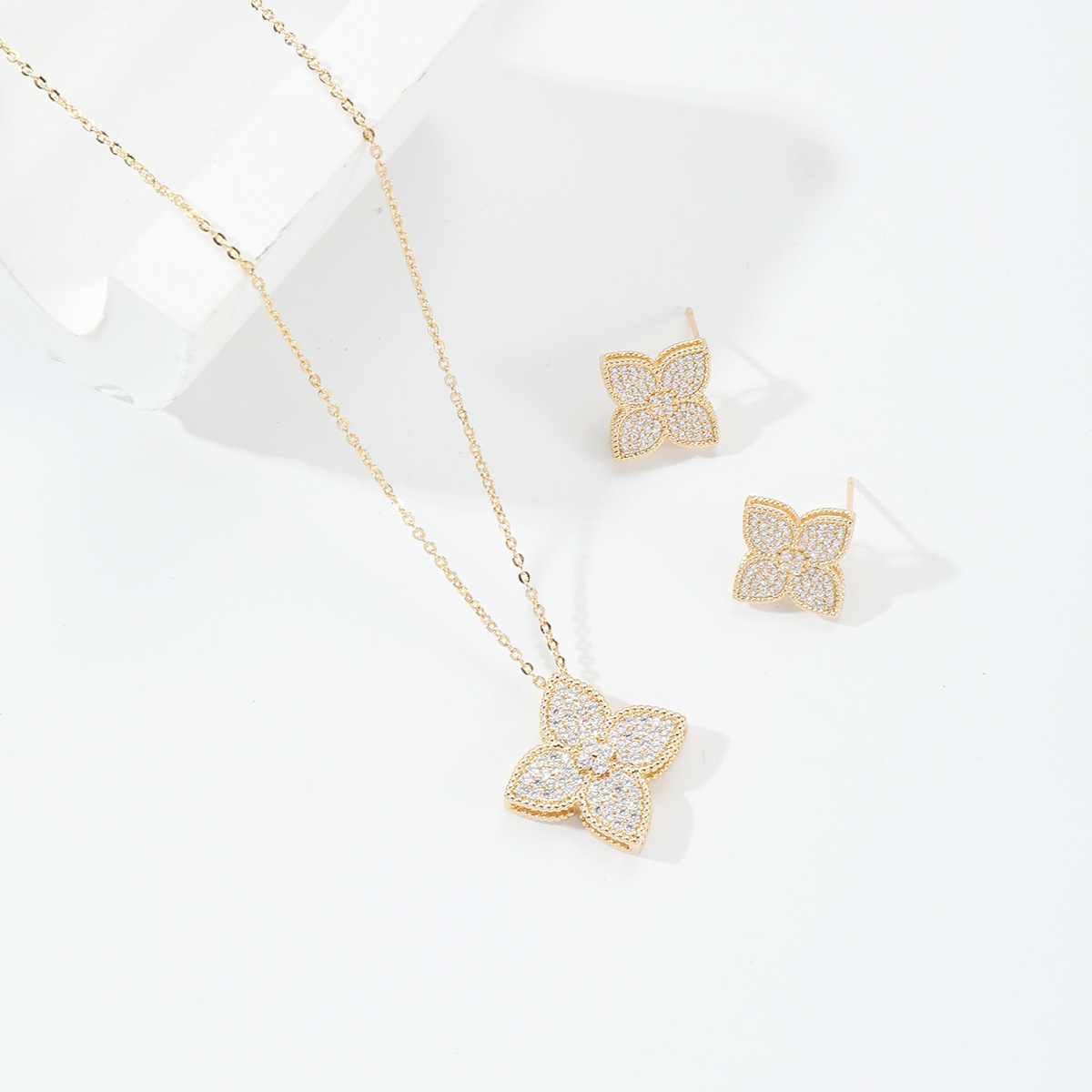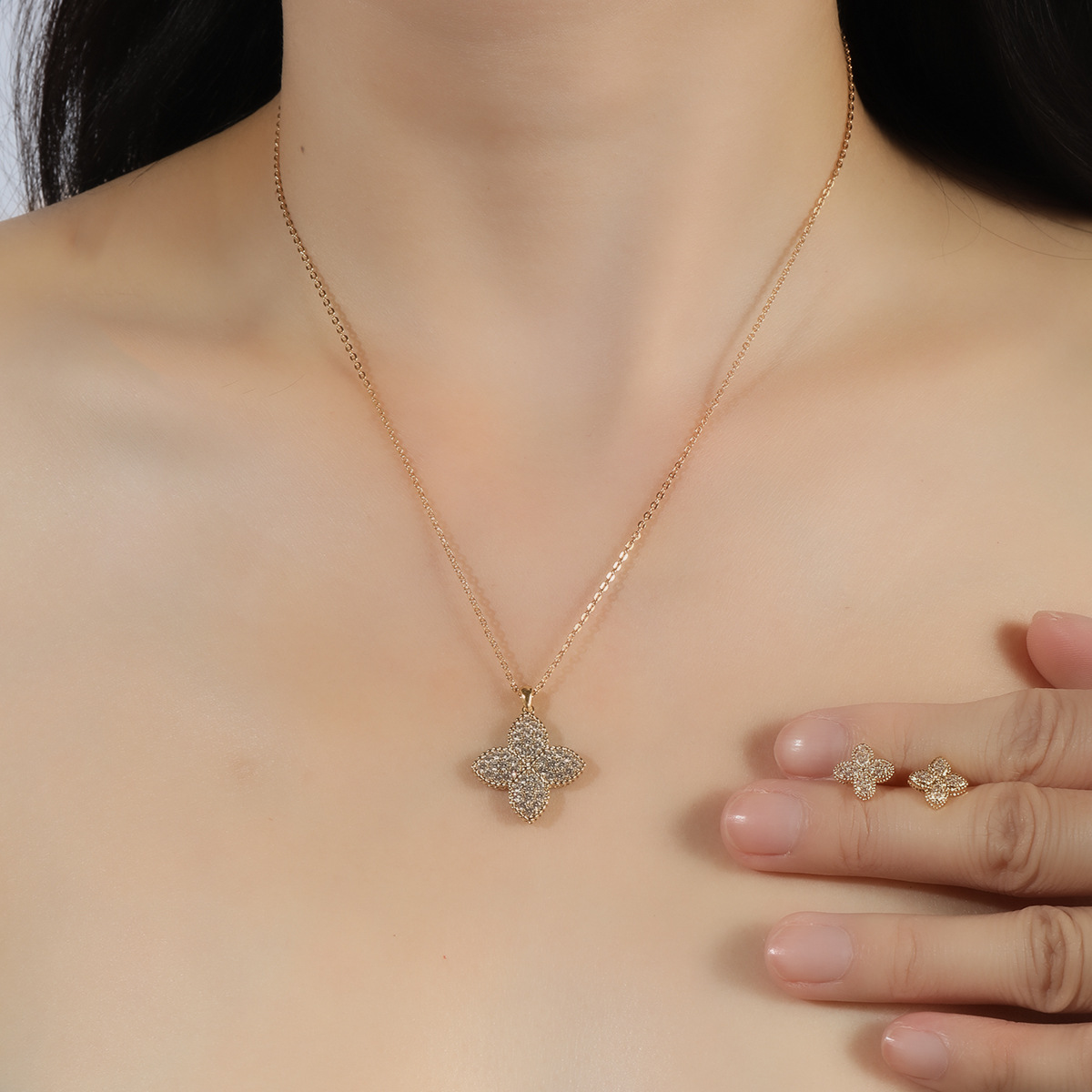 | nameOriginal | New Arrival Four-leaf Clover Micro-inlaid Zircon Necklace Women's Flower Clavicle Chain Light Luxury Niche Lucky Grass All-match Jewelry suit |