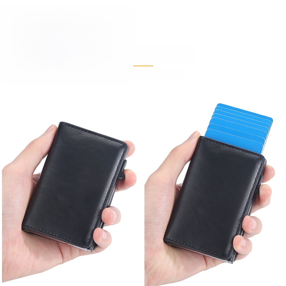 | nameOriginal | New arrival no LOGO men's side push RFID retro multi-card position elastic card bag Crazy Horse leather anti-degaussing card holder for men |