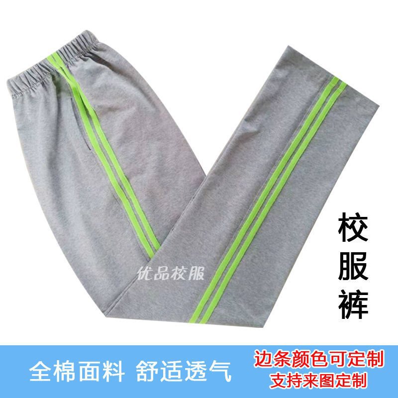 | nameOriginal | New arrival spring summer autumn student uniform pants cotton sports pants two bar fluorescent green loose men's and women's straight trousers |