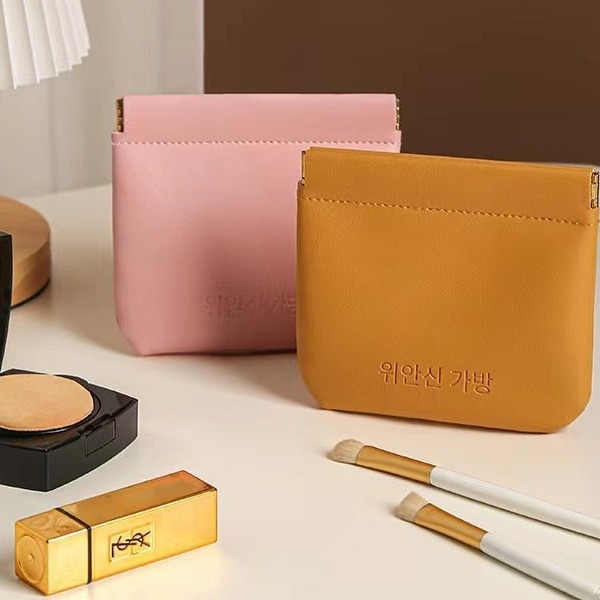 New Automatic Closure Mini Mouth Red Envelope Cosmetics Portable Simple Travel Storage Bag Small Slipper Bag PU