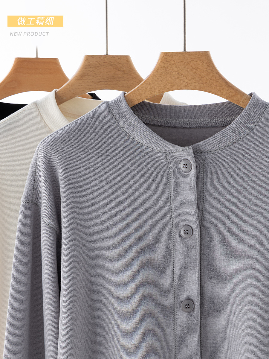 | nameOriginal | New Autumn and Winter Cardigan Solid Color Round Neck Long Sleeve Sweatshirt Outerwear Korean Style Chanel Style Top All-match Baseball Dress Jacket |