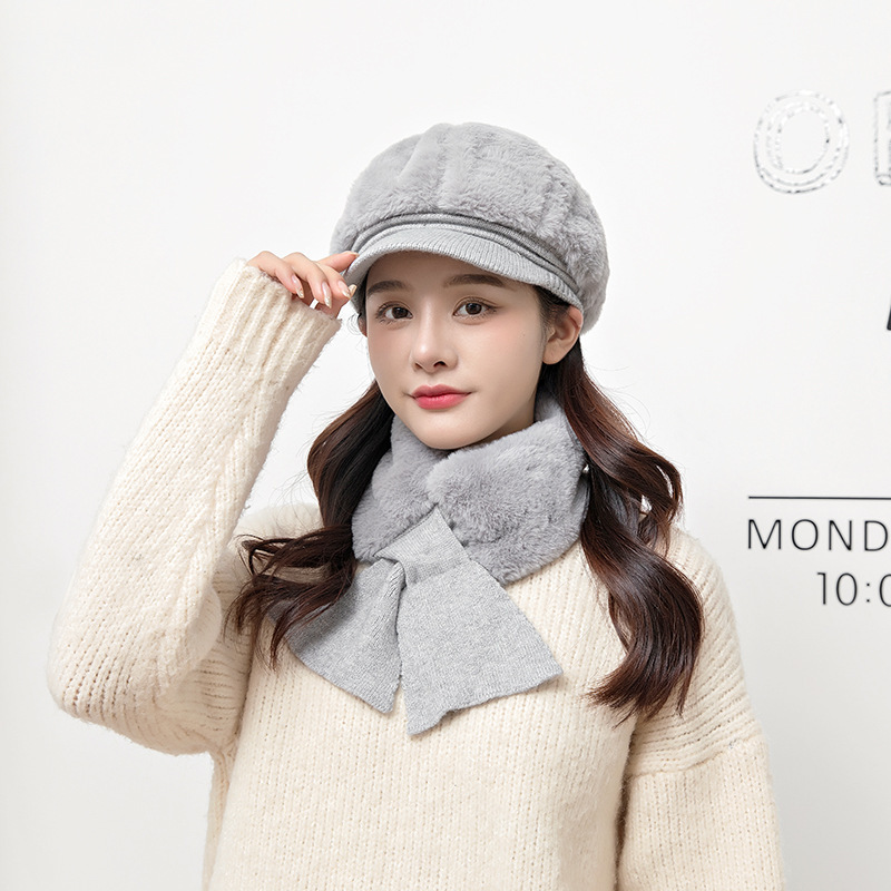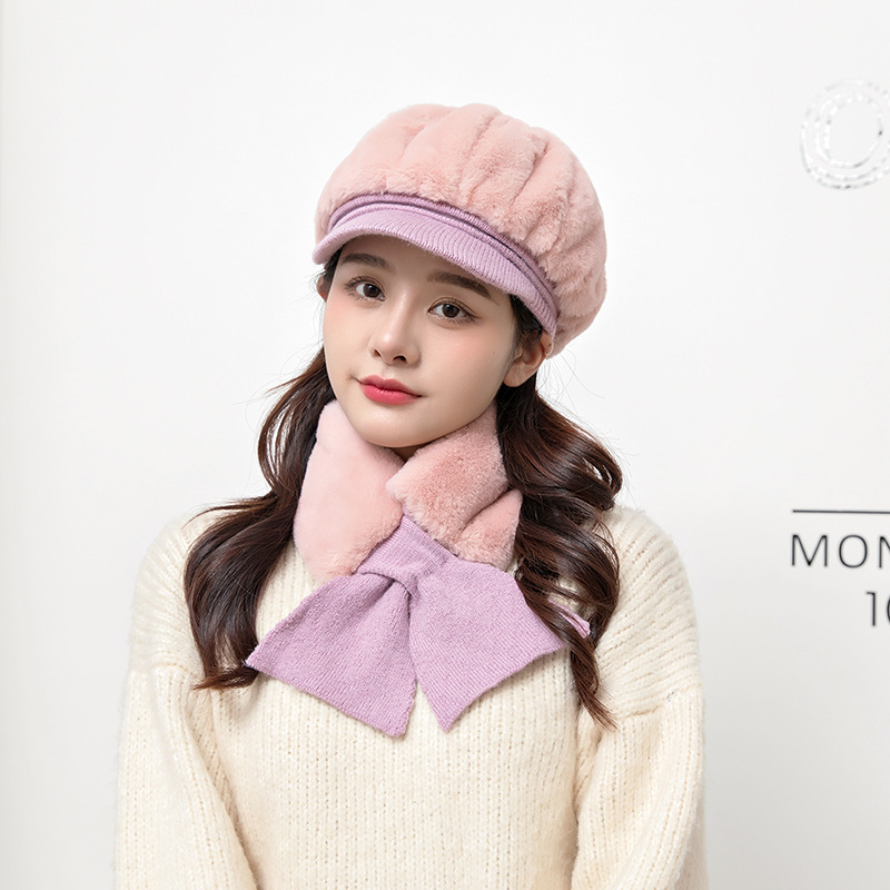 | nameOriginal | New autumn and winter peaked cap Korean style fleece-lined thick beret fashion scarf suit plush knitted hat wholesale |