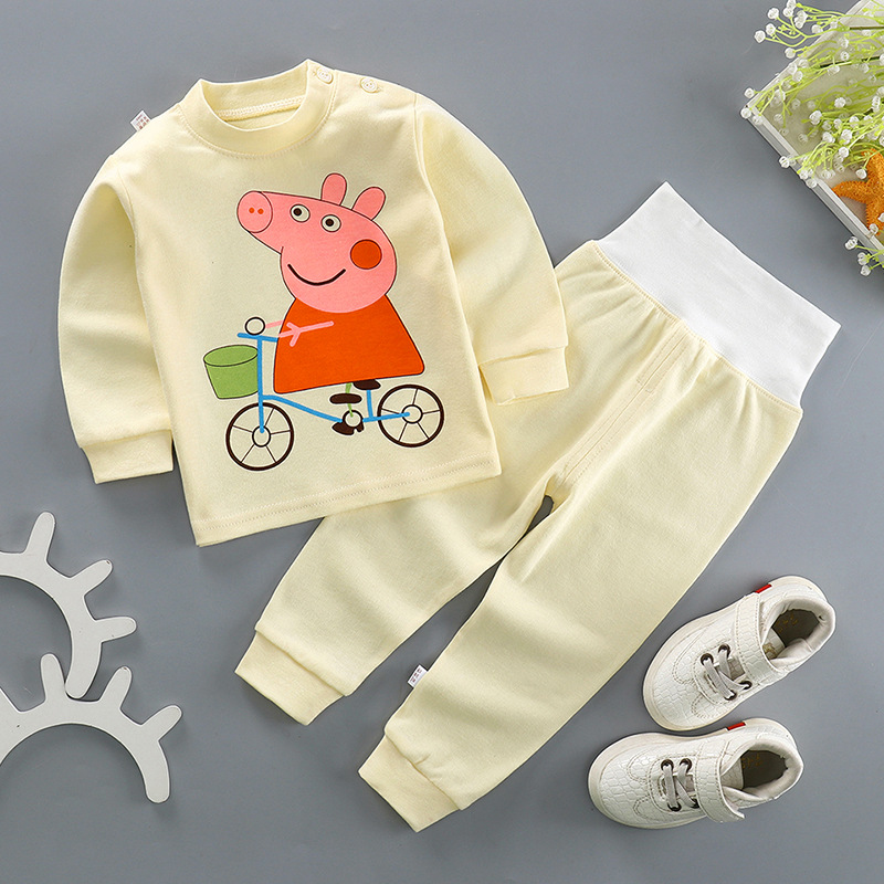 New baby autumn clothes long pants set cotton children's underwear boy baby high waist belly pants spring and autumn wholesale