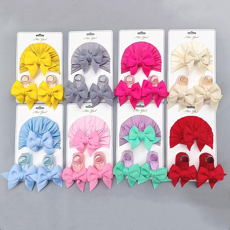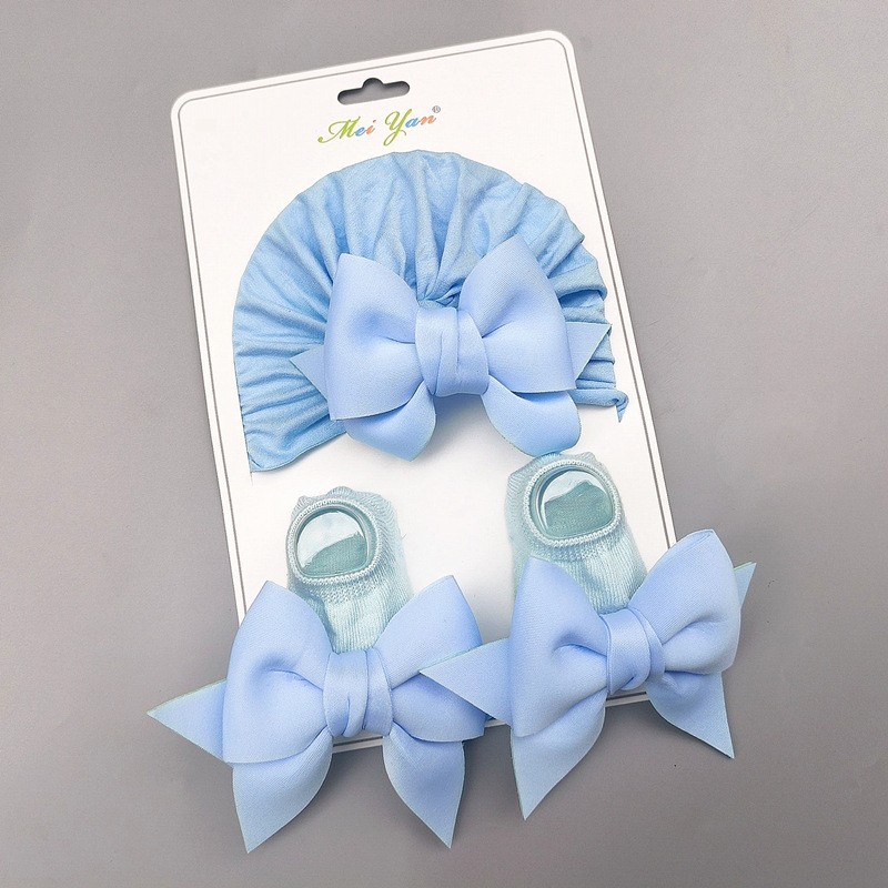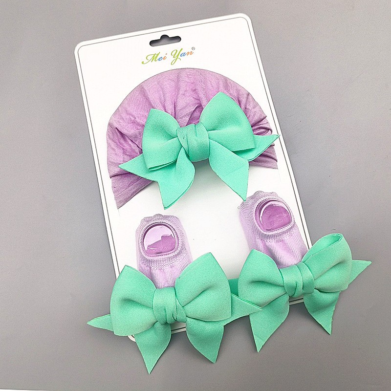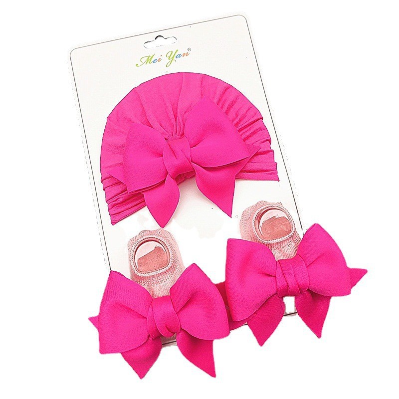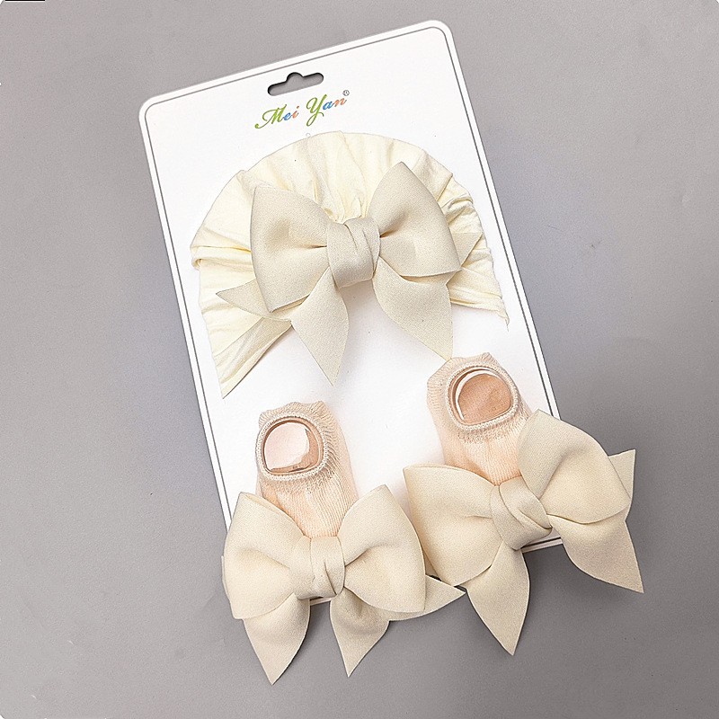 | nameOriginal | New baby socks foot protection shoes non-slip floor socks bow socks + baby hat 2-piece European and American tire hat |