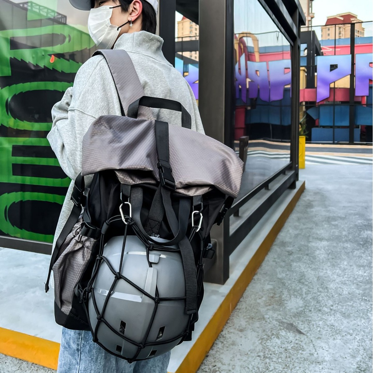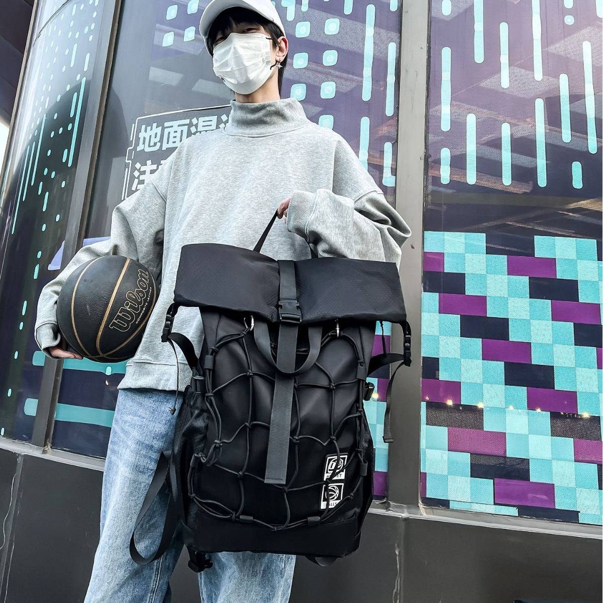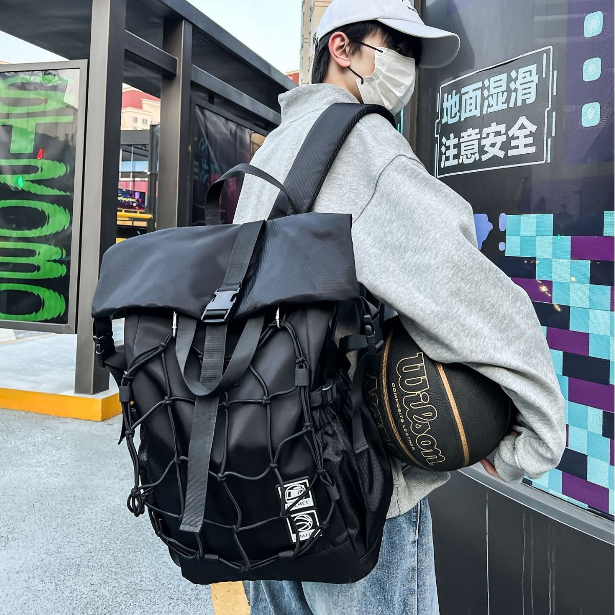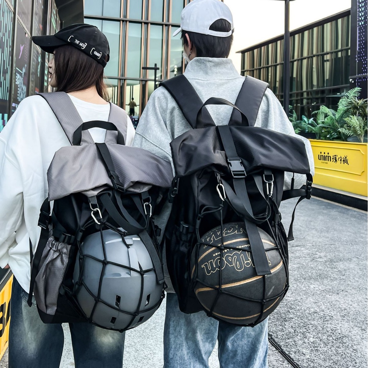 New Backpack Men's Sports Fitness Basketball Bag Fashion Roll-up Riding Helmet Backpack Student Schoolbag