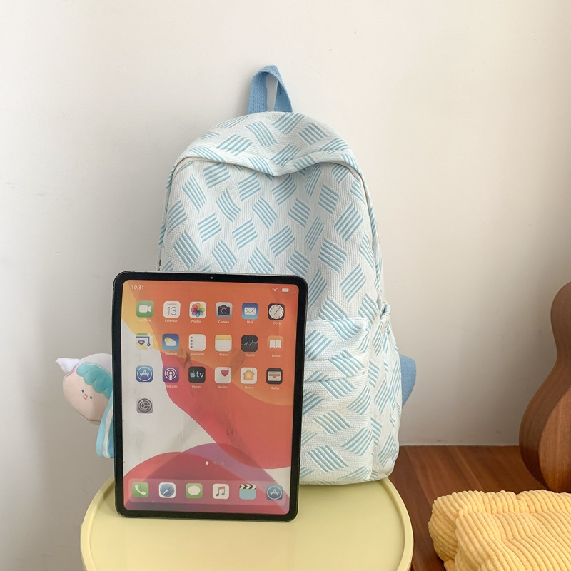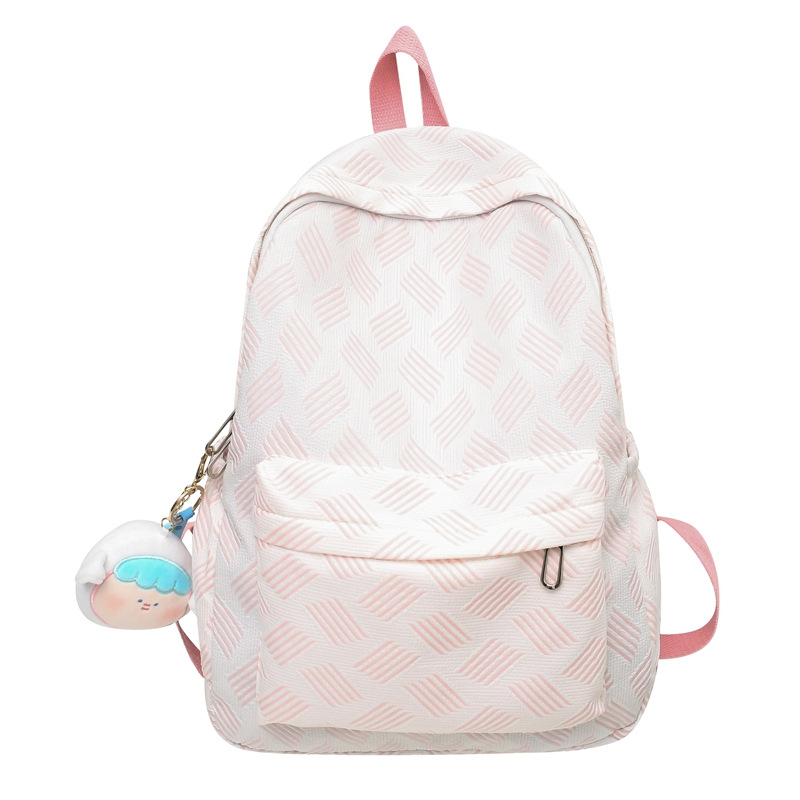 | nameOriginal | New backpack women's Fresh striped junior high school girls' schoolbag large capacity contrast color small doll ornaments girls' backpack |