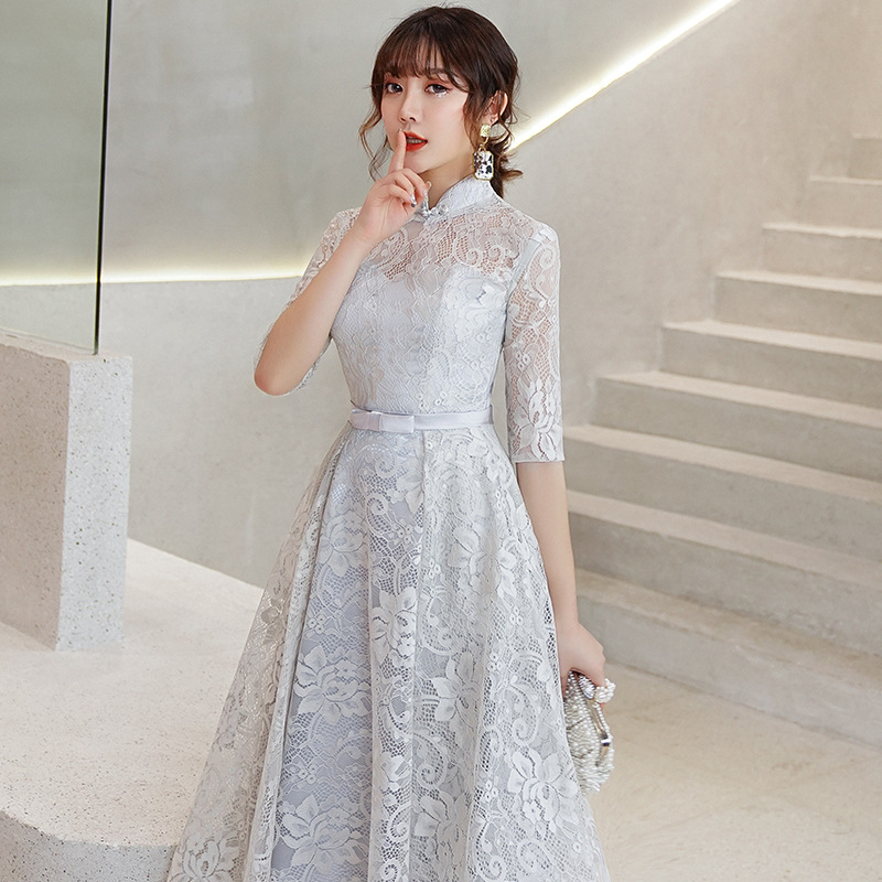 | nameOriginal | New banquet evening dress for women 2024 new spring and summer mid-length mid-sleeve bridesmaid dress gray dress Chinese style |