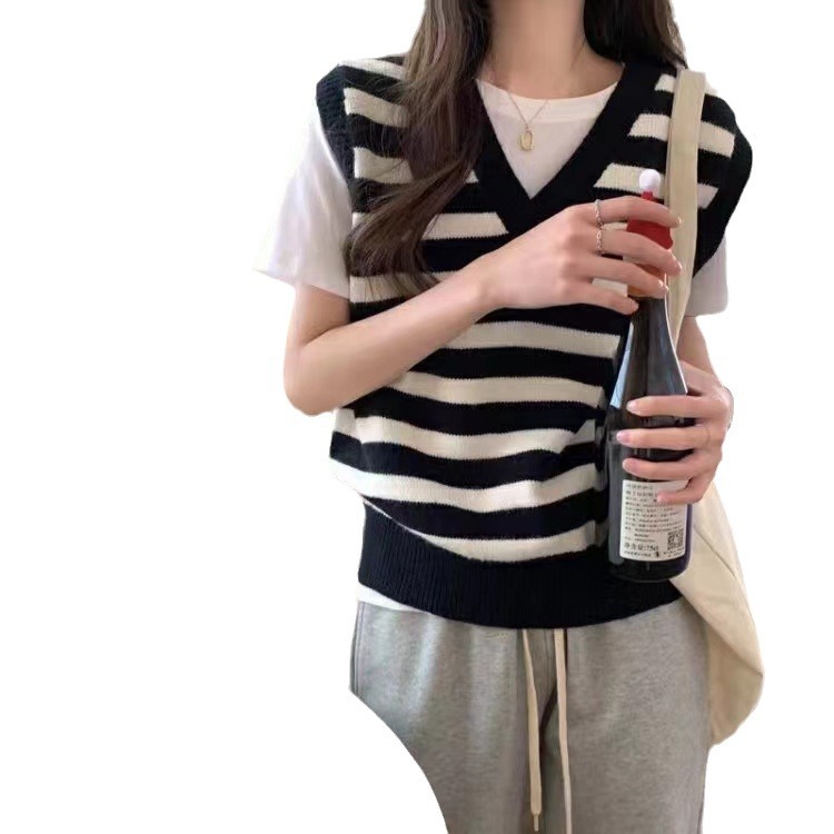 | nameOriginal | New Basic V-neck Simple Striped Loose Knitted Vest Women's Foreign Trade Casual Stacked Knitted Vest |