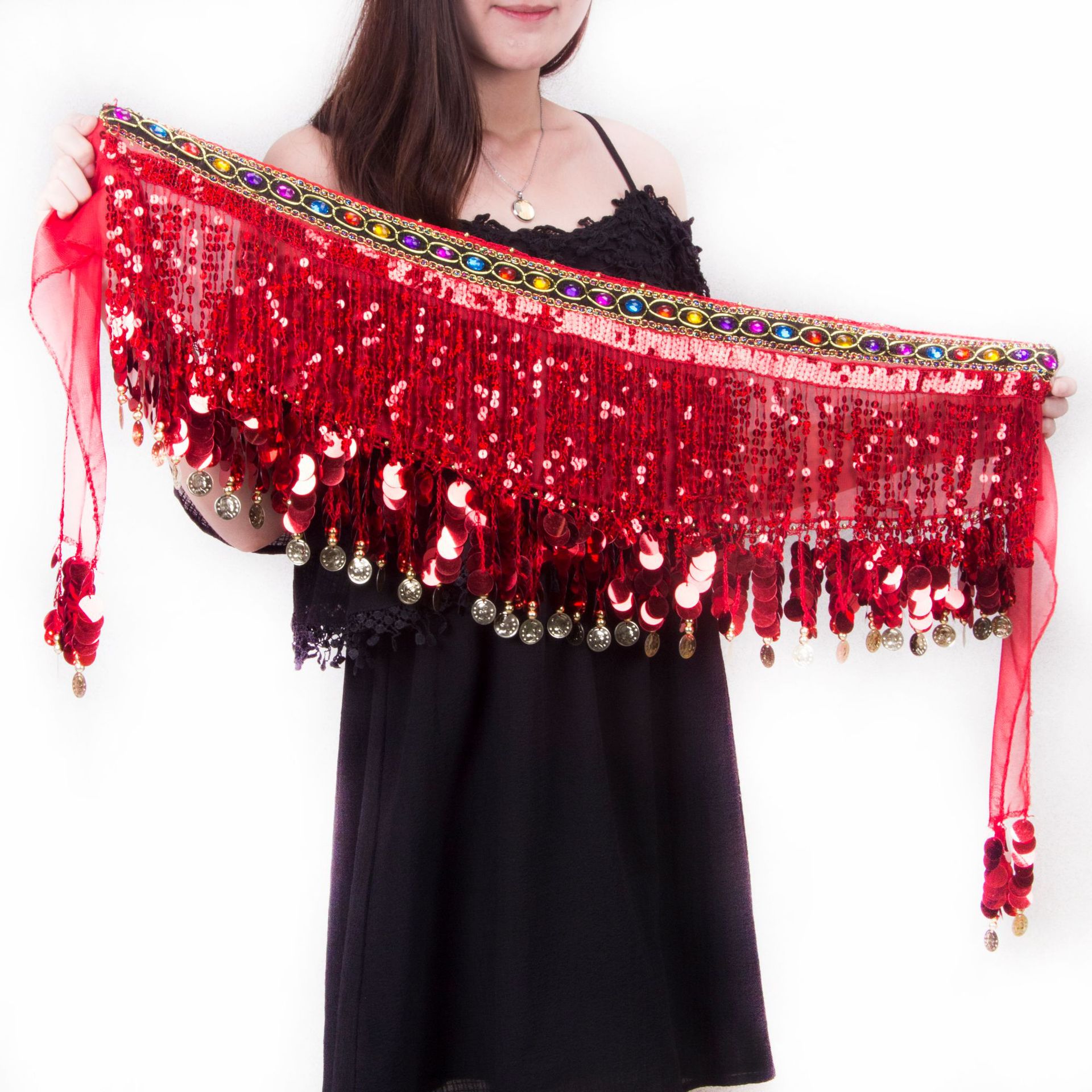 New Belly Dance Waist Chain Hip Towel Beginner Tassel Waist Towel Indian Dance Watch Performance Belt Waist Cover