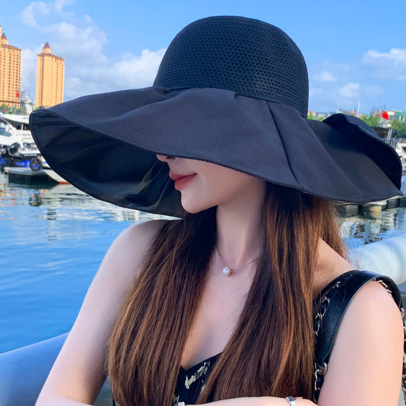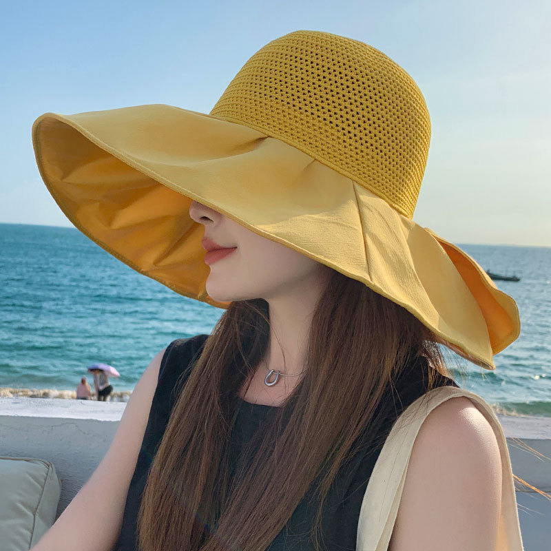 | nameOriginal | New big brim sun protection hat women's linen hollow stitching cool hat outdoor UV protection beach sun hat tide |