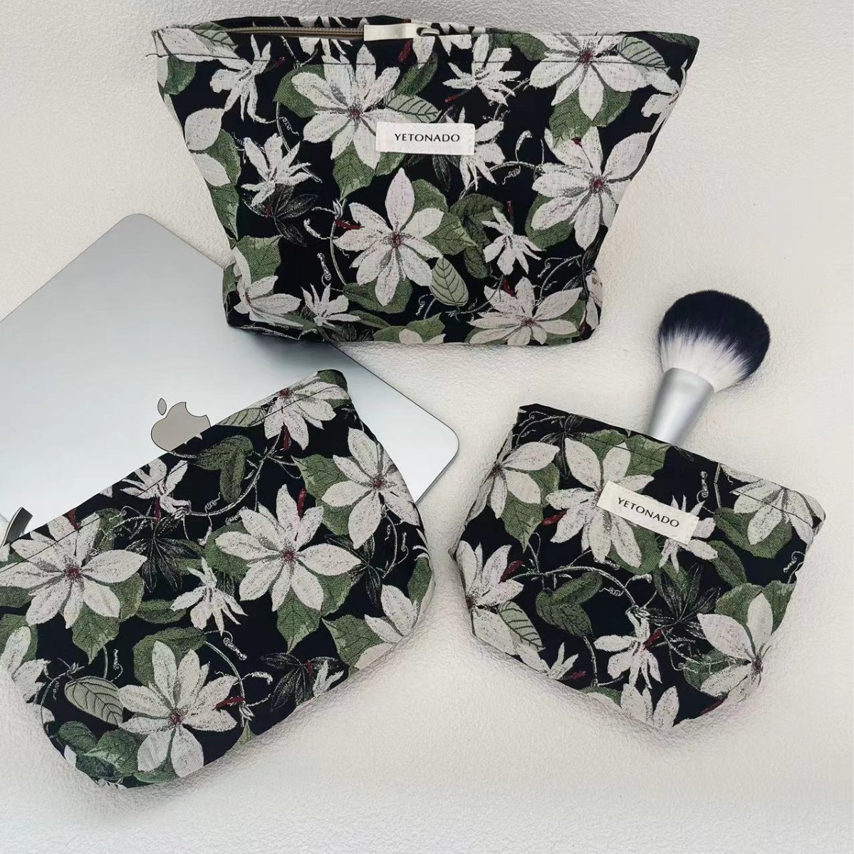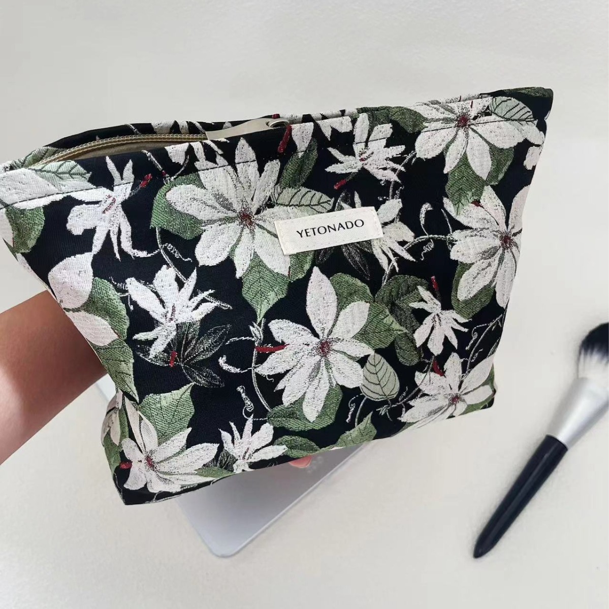 | nameOriginal | New Black Green and White Jacquard Handbag Women's Portable Hand Bag Large Capacity Cosmetic Bag Vintage Niche Zipper |