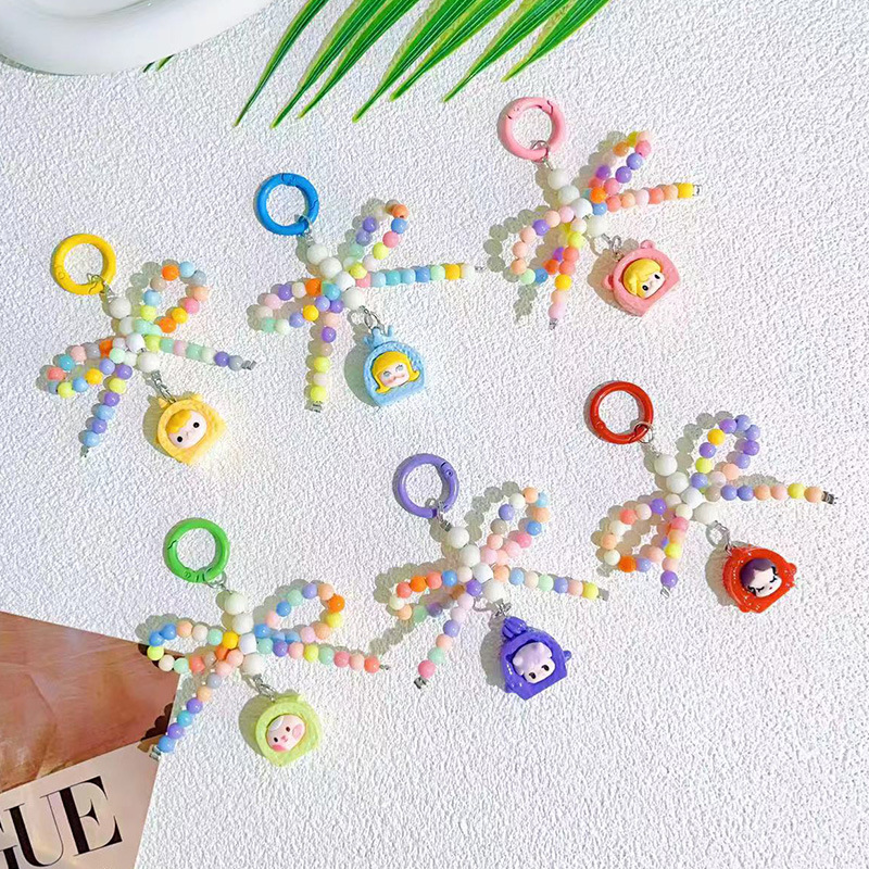 | nameOriginal | New bow beaded cartoon cute grain mobile phone chain keychain bag pendant TikTok popular earphone box accessories |
