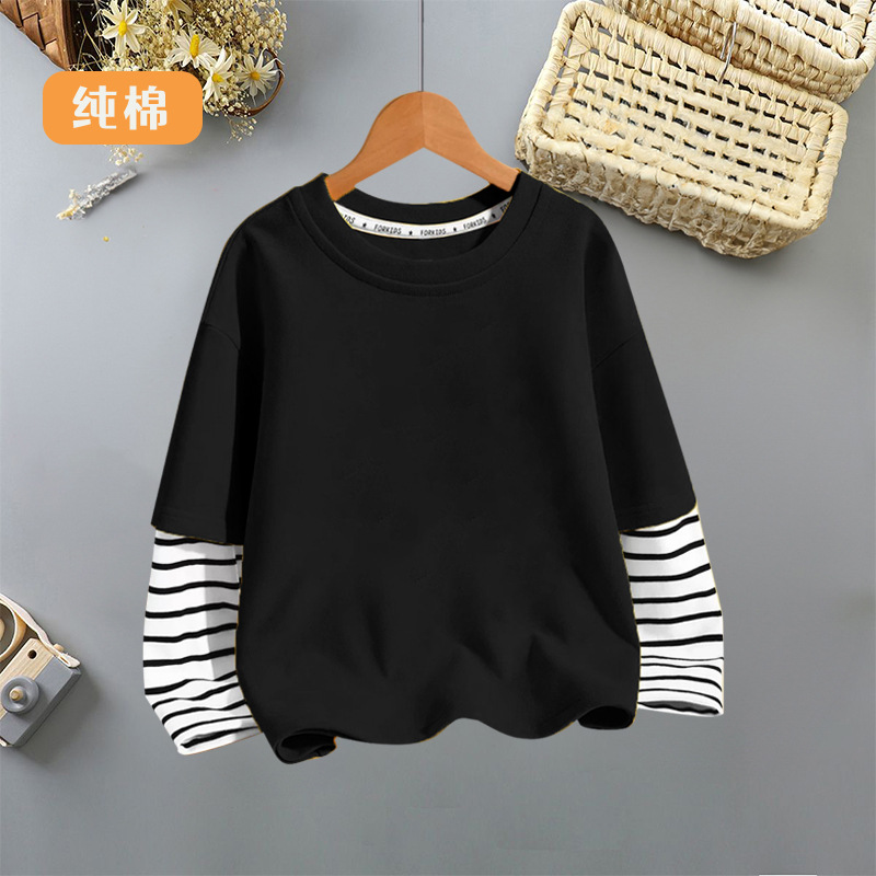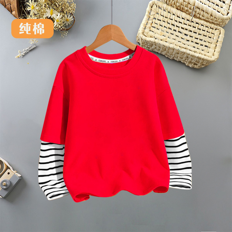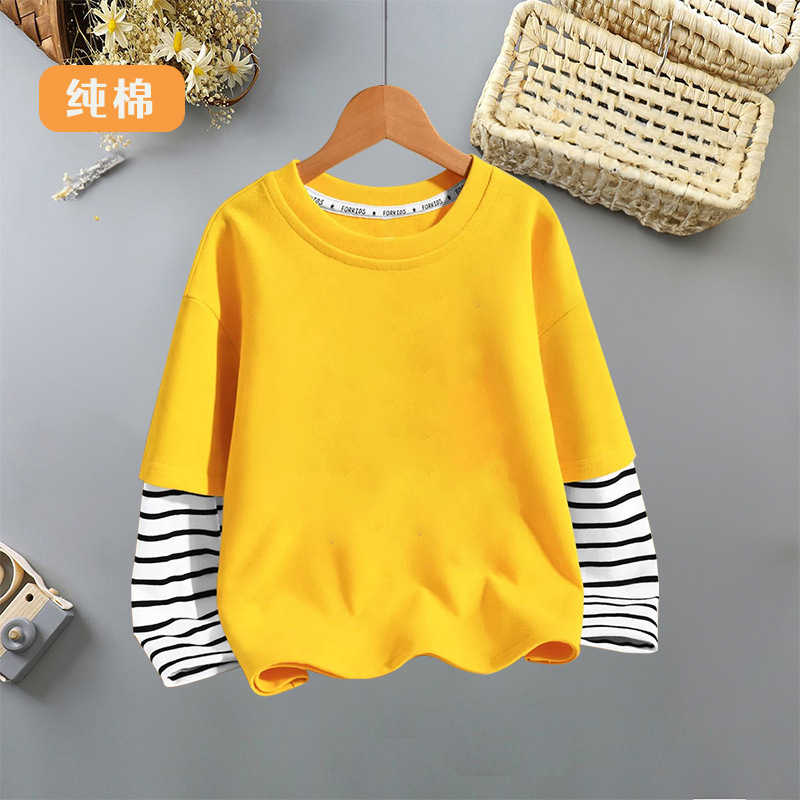 | nameOriginal | New boys and girls long sleeve 2024 spring and autumn clothes bottoming shirt T-shirt medium and large children's clothing striped stitching fake two-piece Top Y |