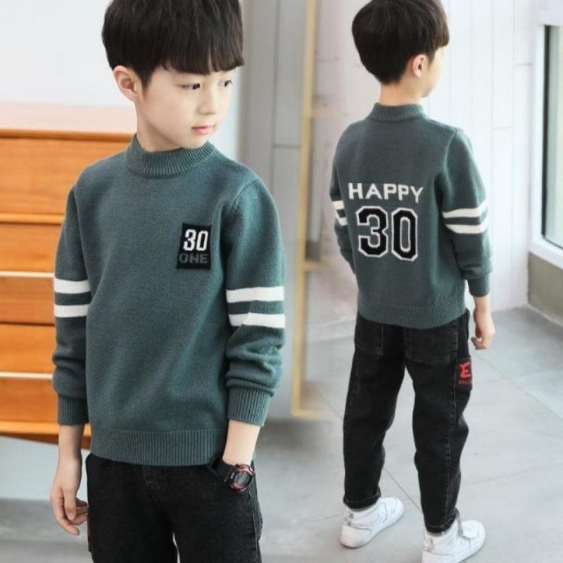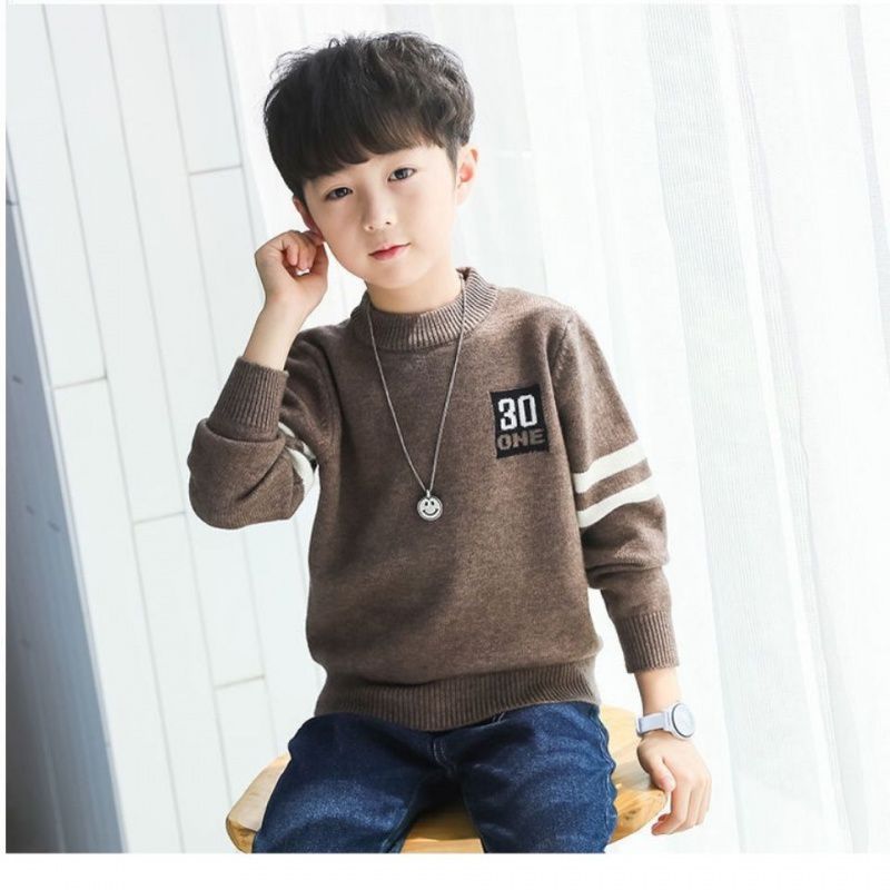 New Boys' Knitted Sweater Base Pullover Spring, Autumn and Winter Western Style Korean Fashion Casual