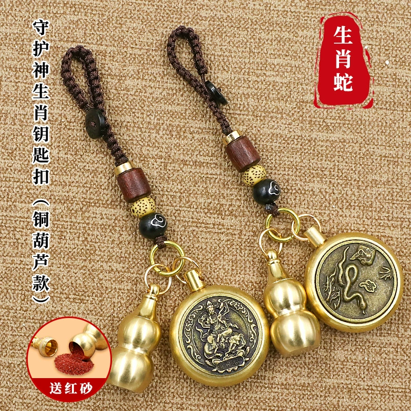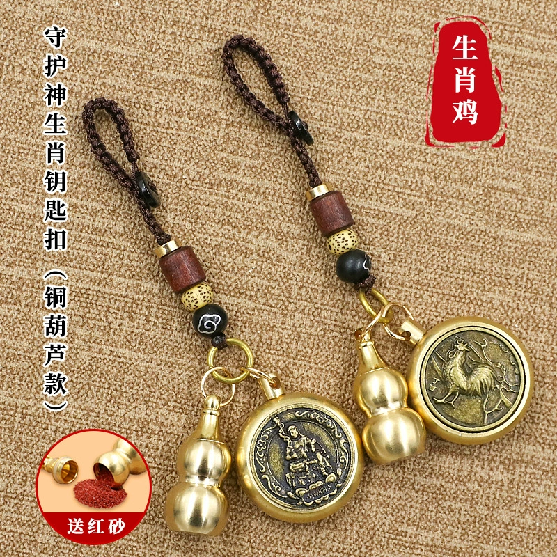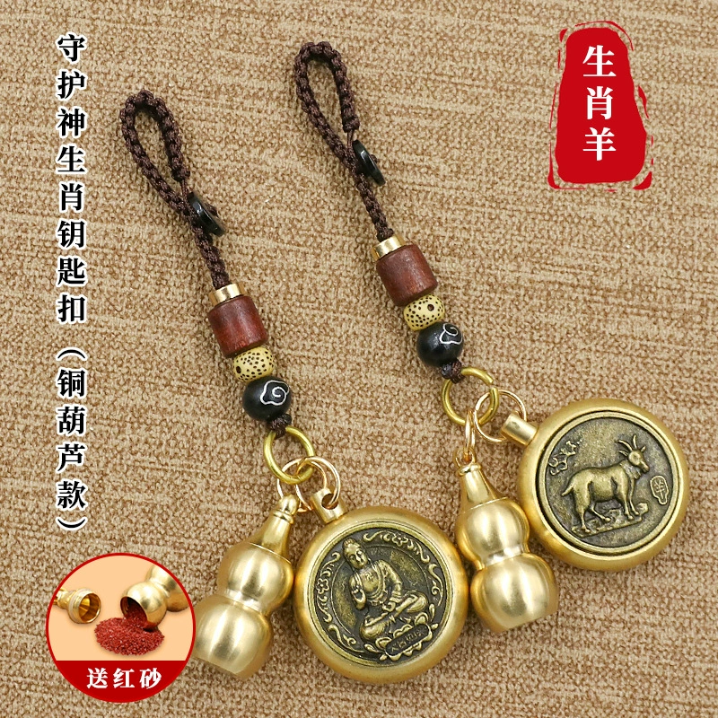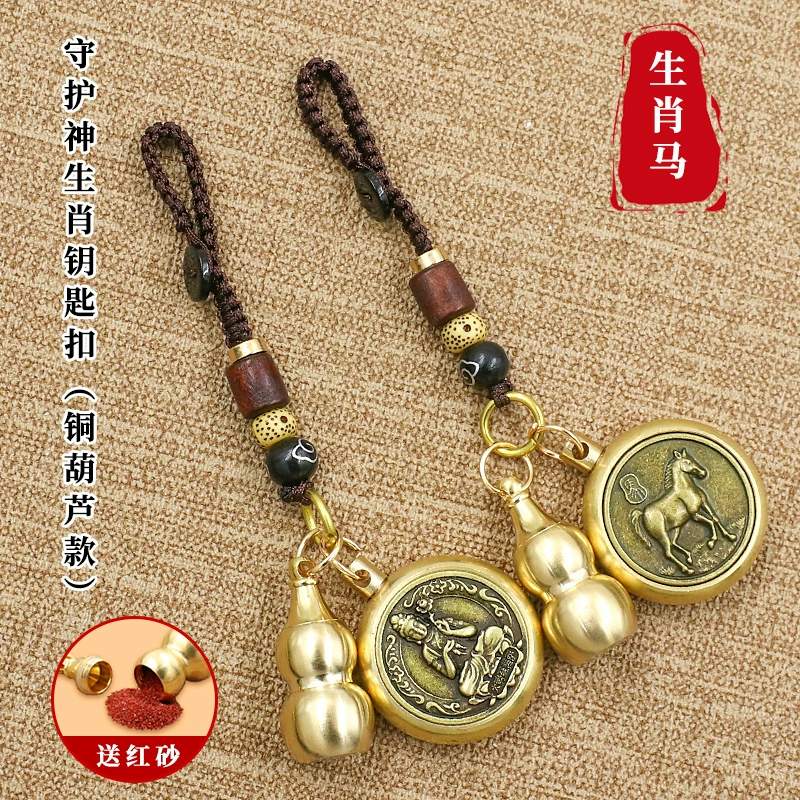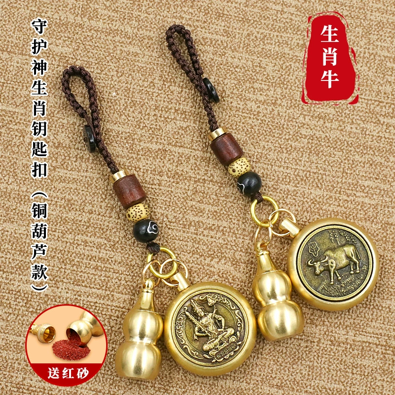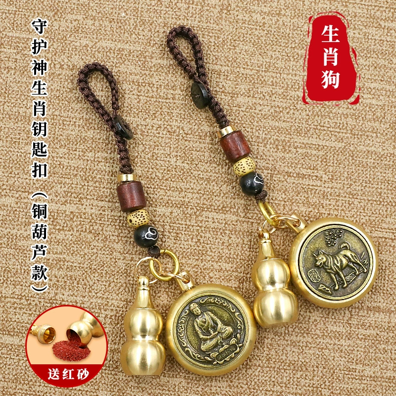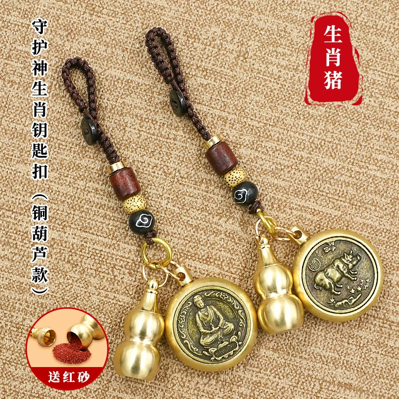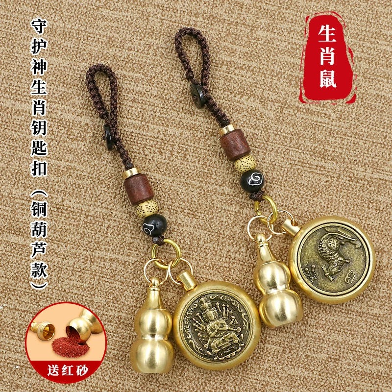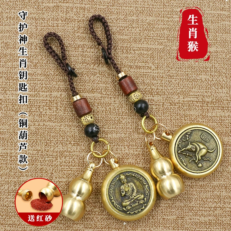 | nameOriginal | New brass eight guardian twelve zodiac sign key chain pendant auspicious cloud beads flat knot copper gourd pendant |