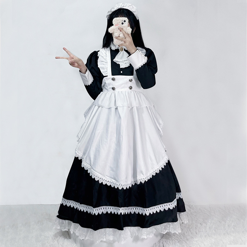 New British Aristocratic Long-sleeved Maid Dress Coffee Shop Work Uniform Dress Black and White Classic Puppet Dress