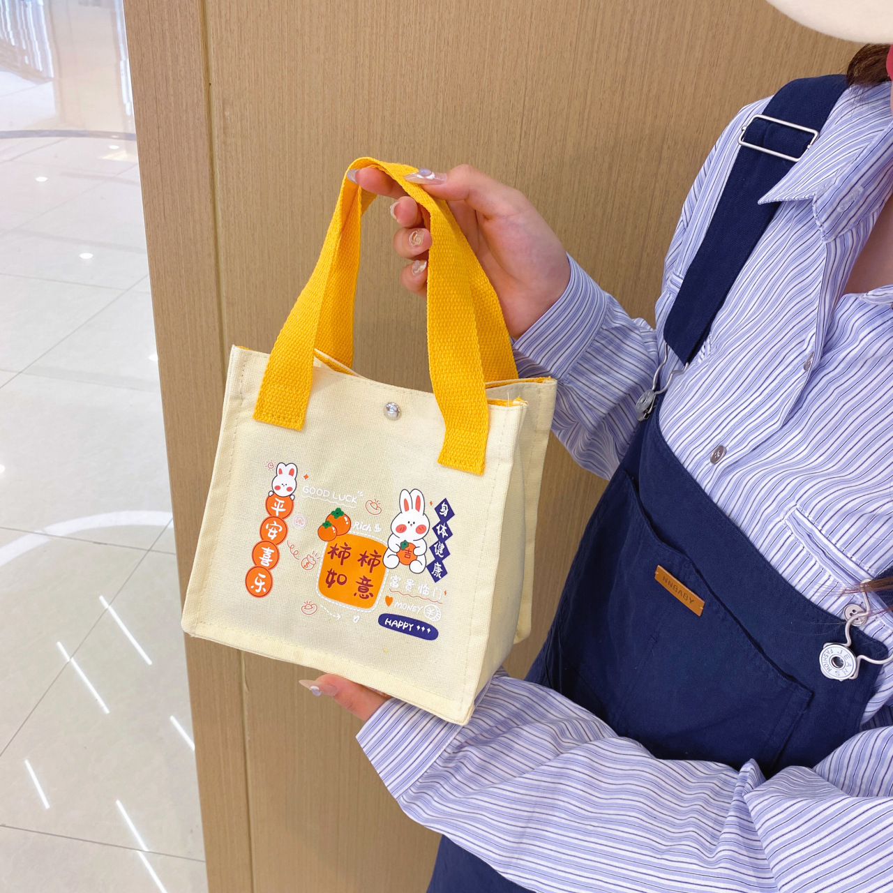 New canvas bag Persimmon Ruyi handbag small square bag fashion casual cute lunch bag handbag hand bag