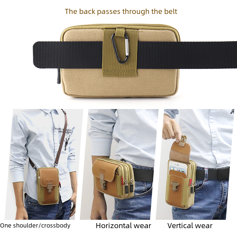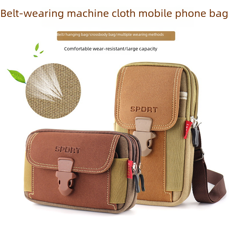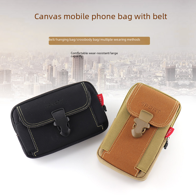 New Canvas Mobile Phone Bag Wearing Belt Vertical Mobile Phone Case Multi-functional Men's Crossbody Bag Canvas Wear-resistant Waist Hanging Bag