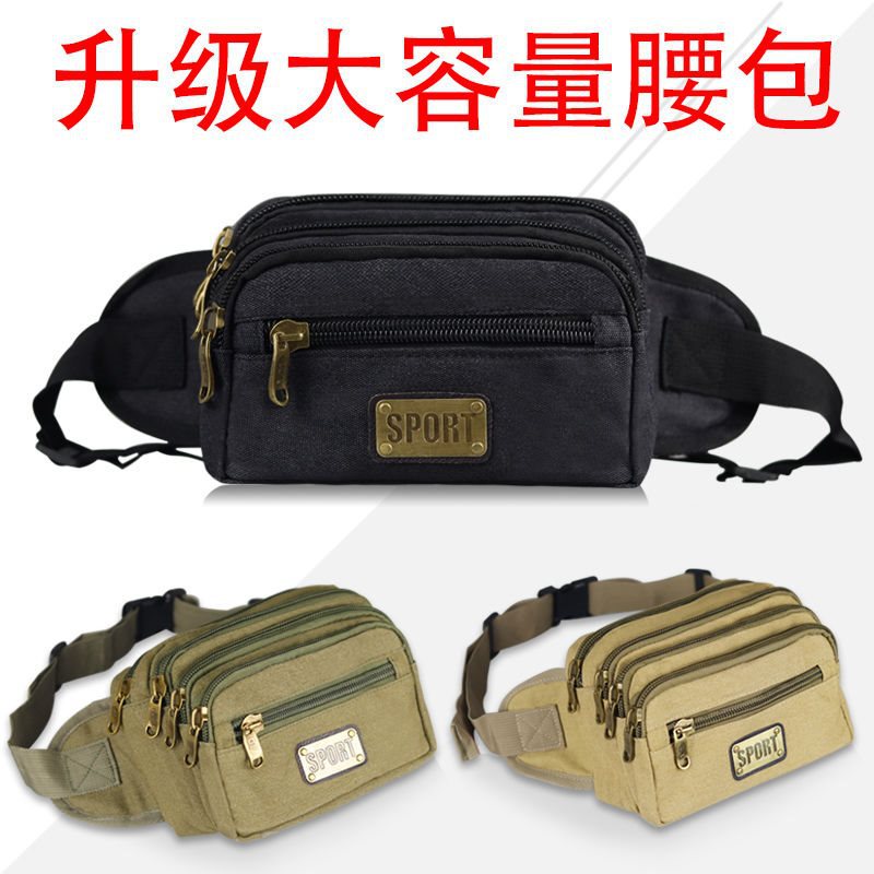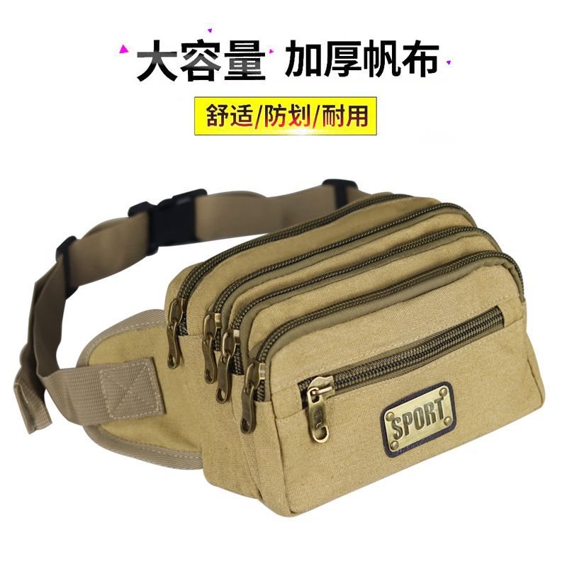 New Canvas Waist Bag Men's Multifunctional Large Capacity Cash register Business Bag Wear-resistant Breathable Outdoor Sports Mobile Phone Waist Bag