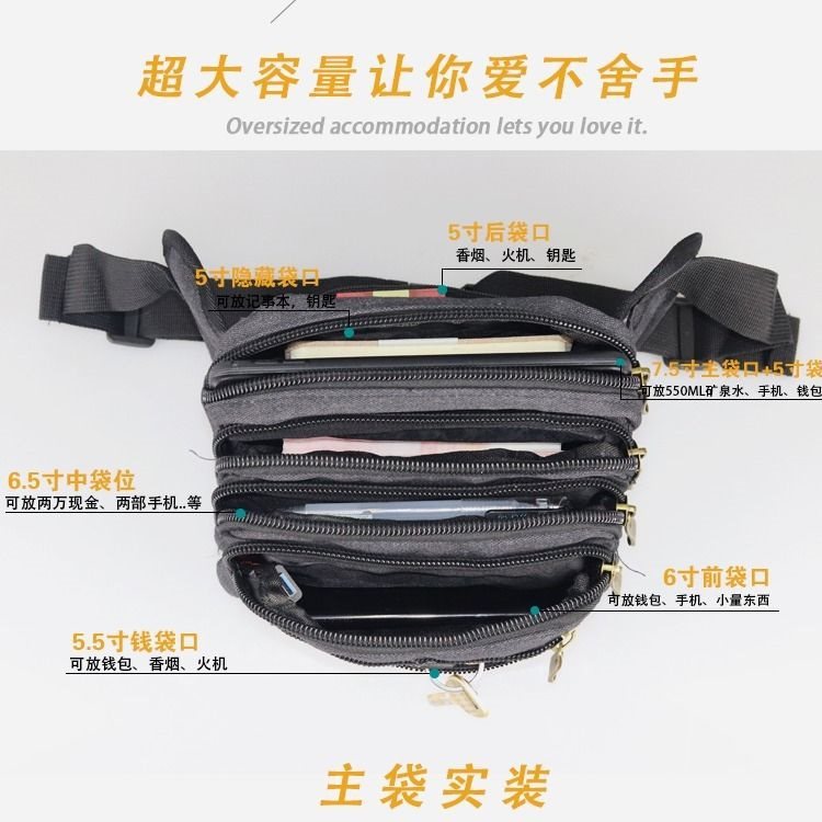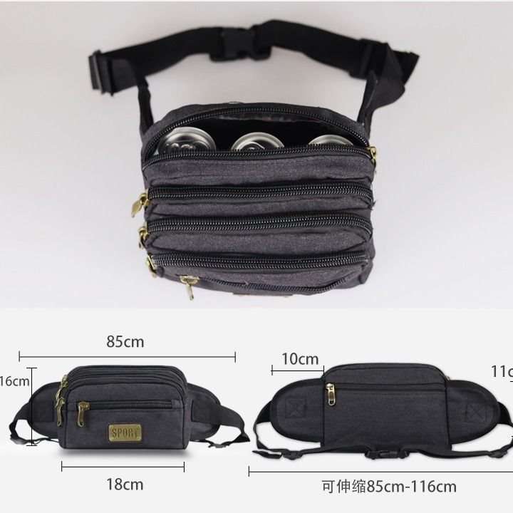 New Canvas Waist Bag Men’s Multifunctional Large Capacity Cash register Business Bag Wear-resistant Breathable Outdoor Sports Mobile Phone Waist Bag