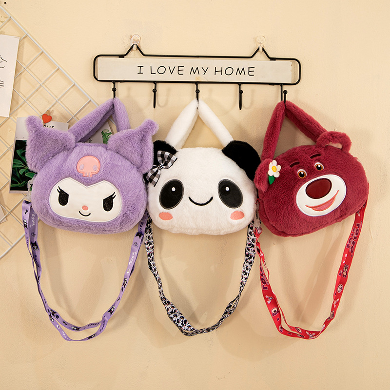 | nameOriginal | New cartoon bag student shoulder bag cute plush doll handbag panda strawberry bear bag factory direct |