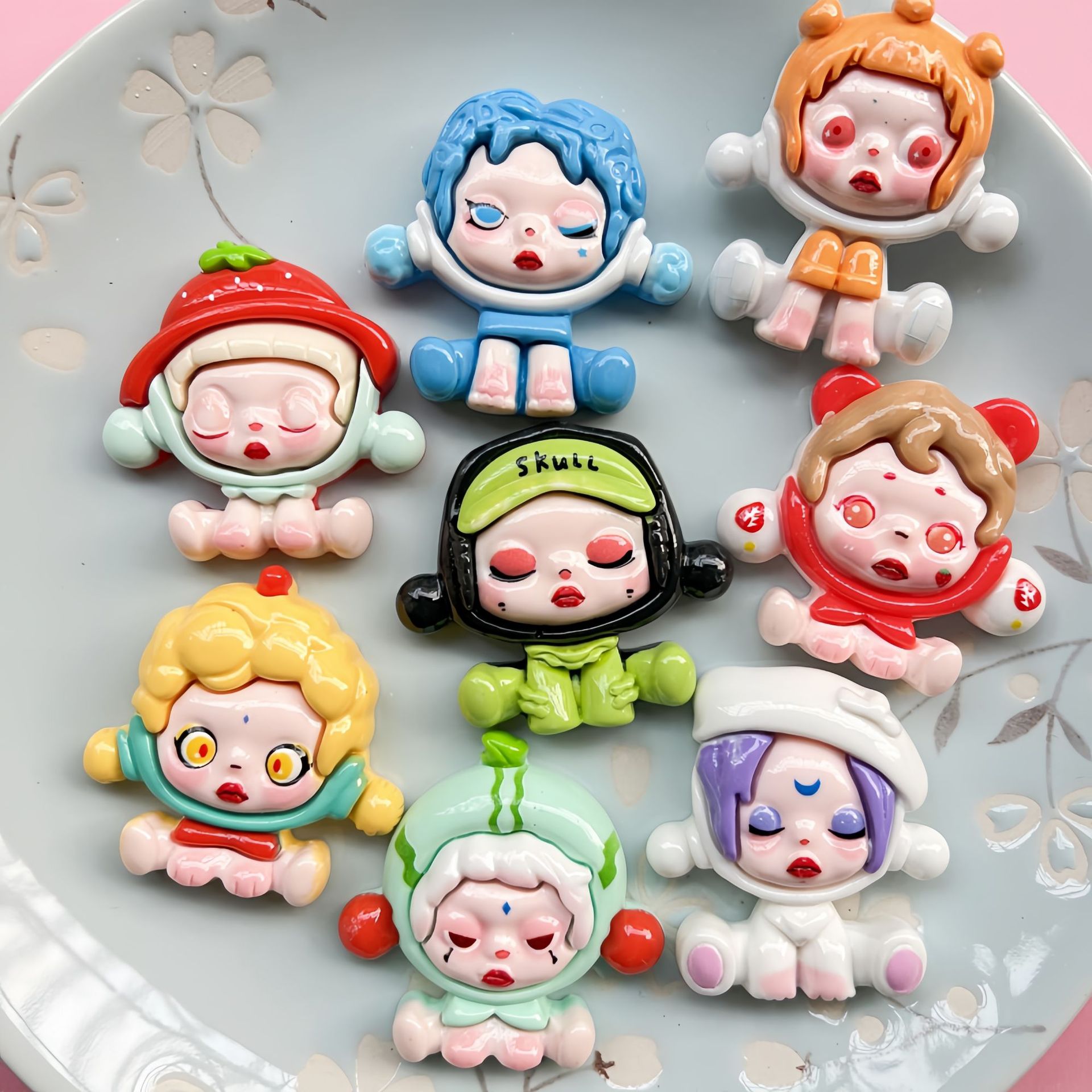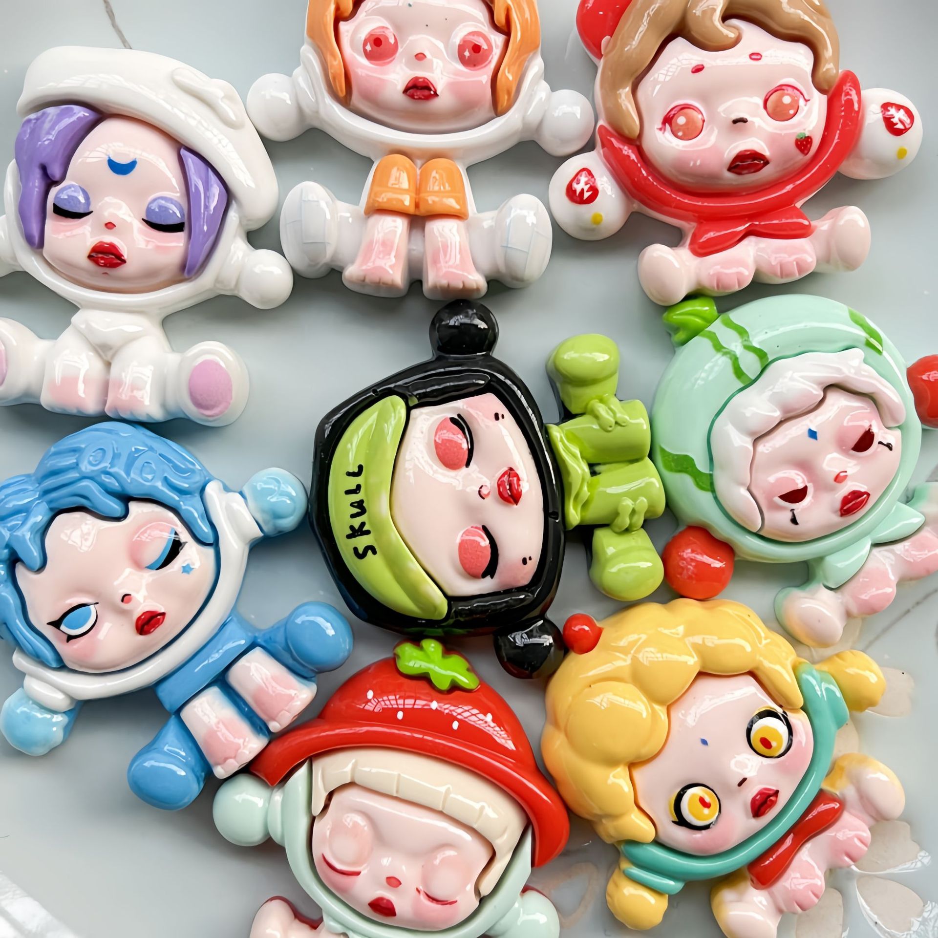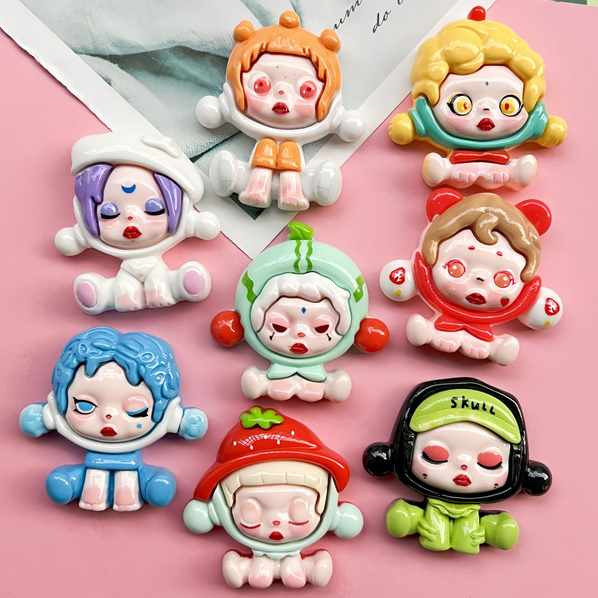 New Cartoon big card bubble sitting girl handmade diy cream glue resin accessories refrigerator sticker hairpin material