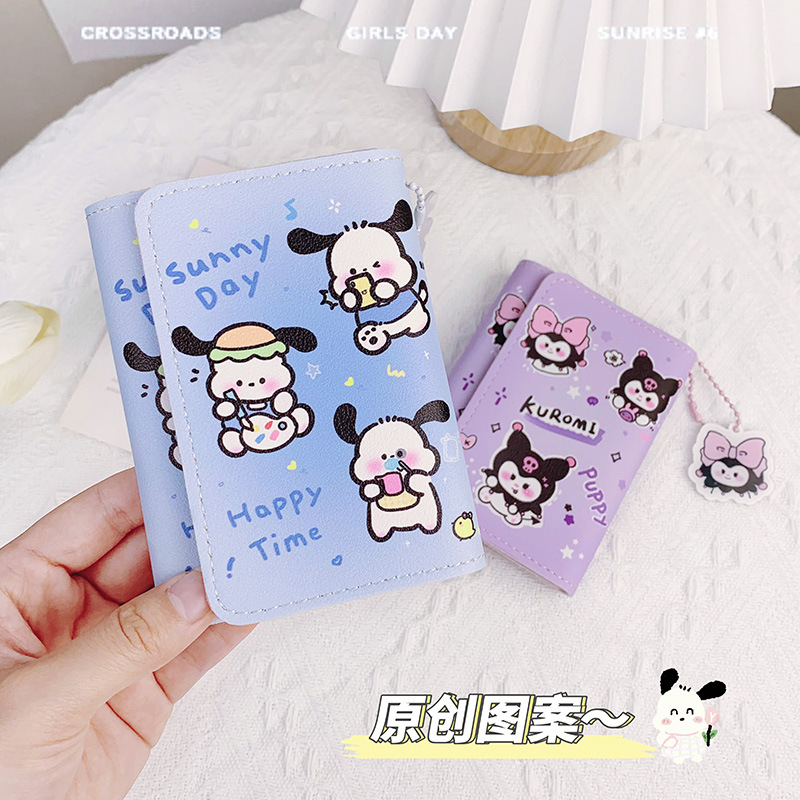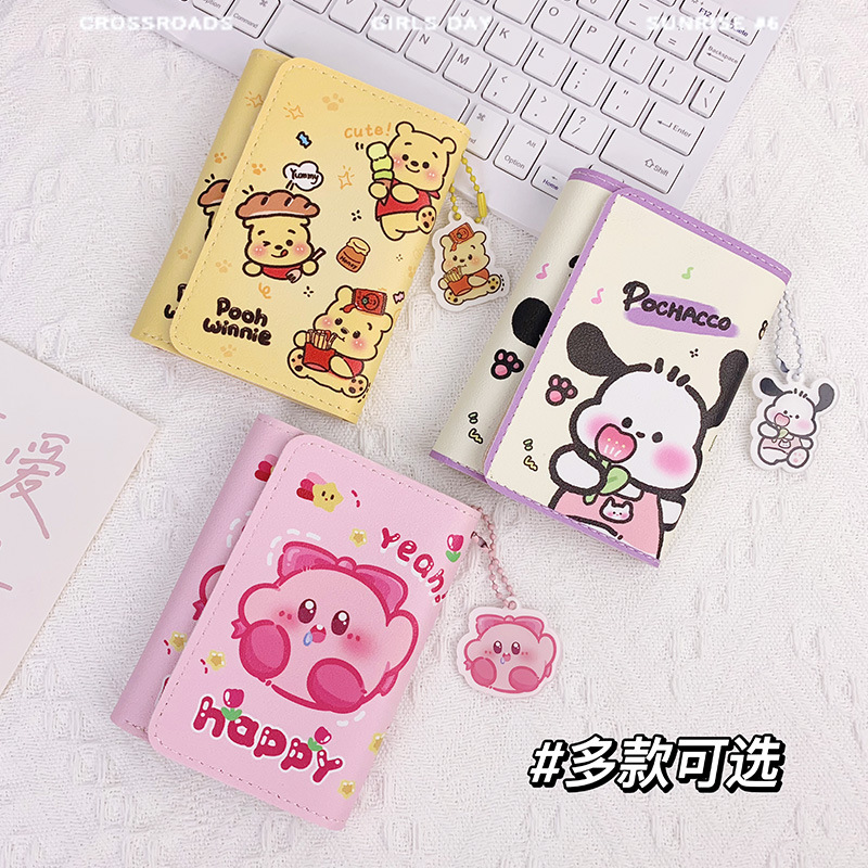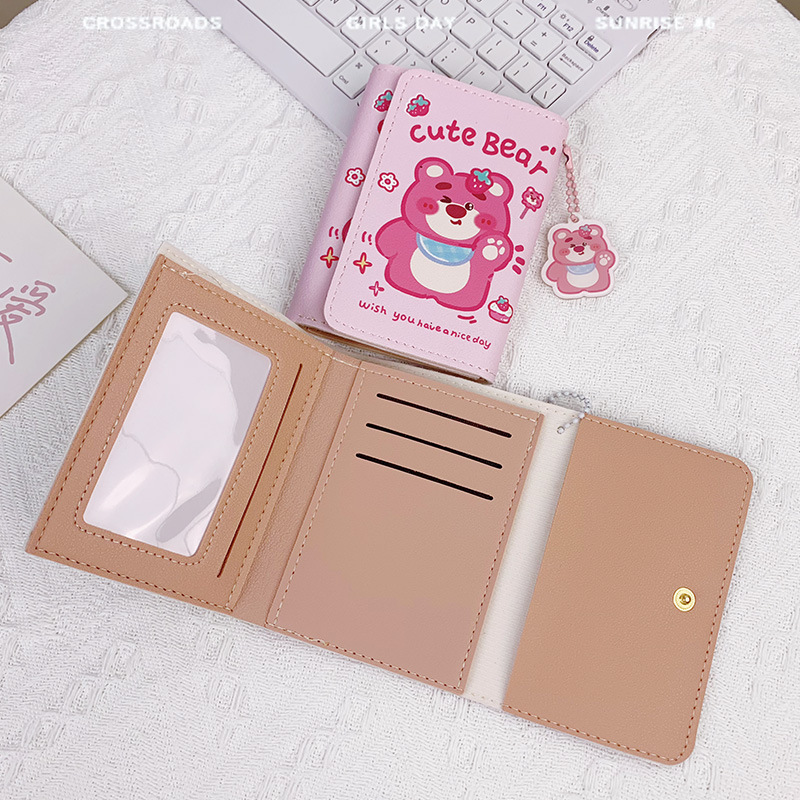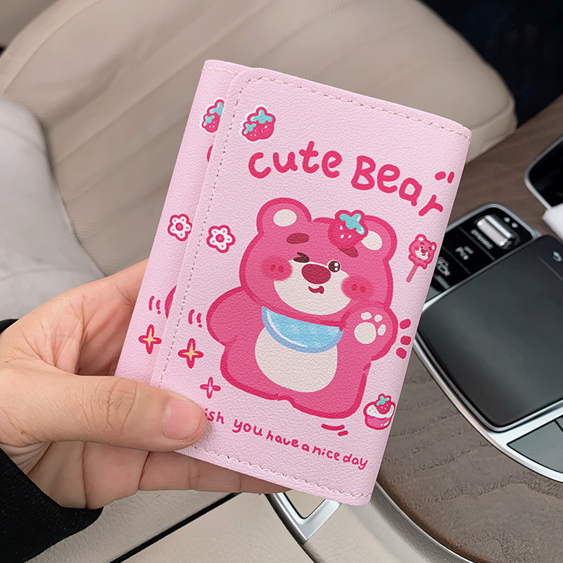New Cartoon ins Cute Thin Mini Wallet Printed Puleather Buckle Three-fold Short Wallet Card Bag Change