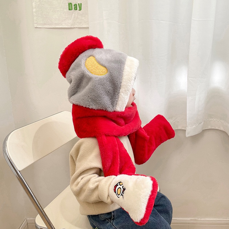 | nameOriginal | New cartoon style children's hat scarf gloves three-piece Winter thickened warm baby scarf integrated hat |
