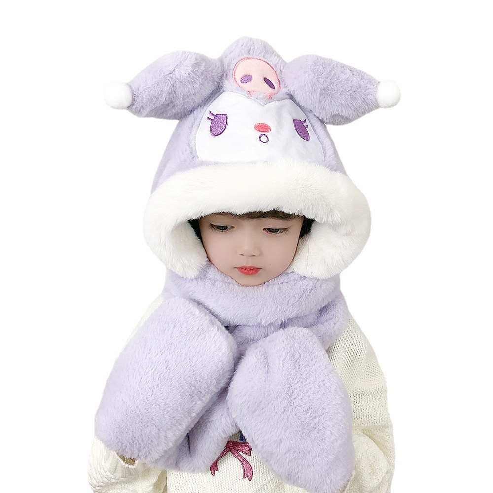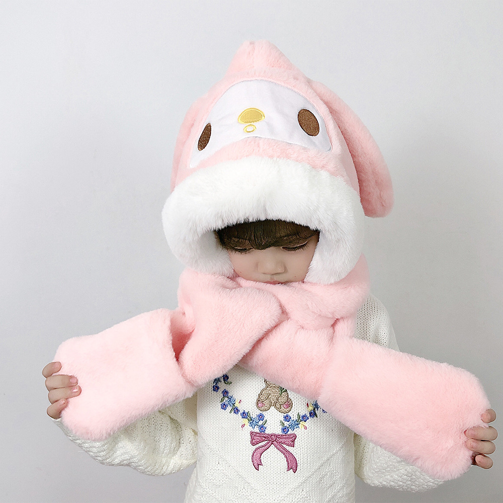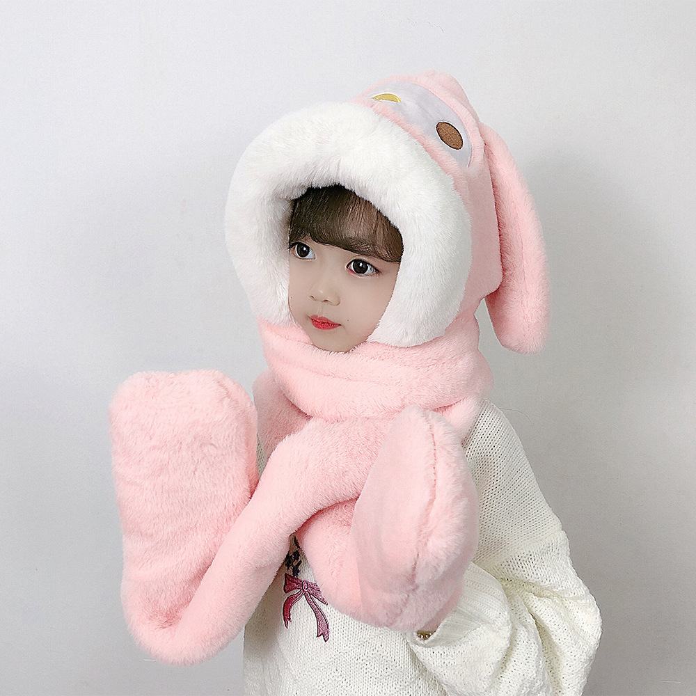 | nameOriginal | New cartoon style children's hat scarf gloves three-piece Winter thickened warm baby scarf integrated hat |